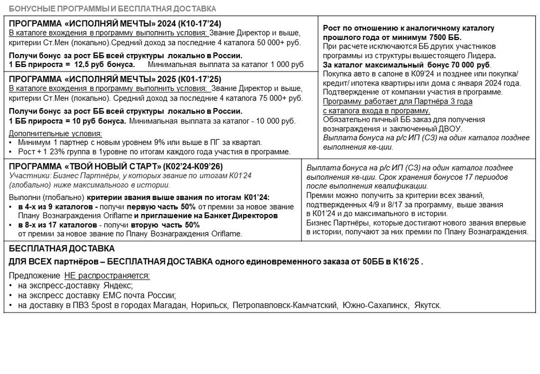 Условия стартовой программы Oriflame для новых Бьюти Партнёров и Бизнес Партнёров с 14 сентября 2025 года.