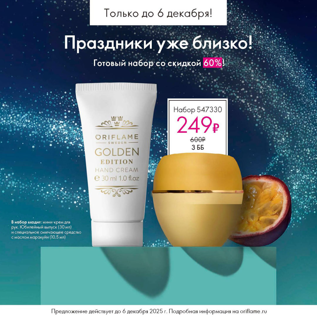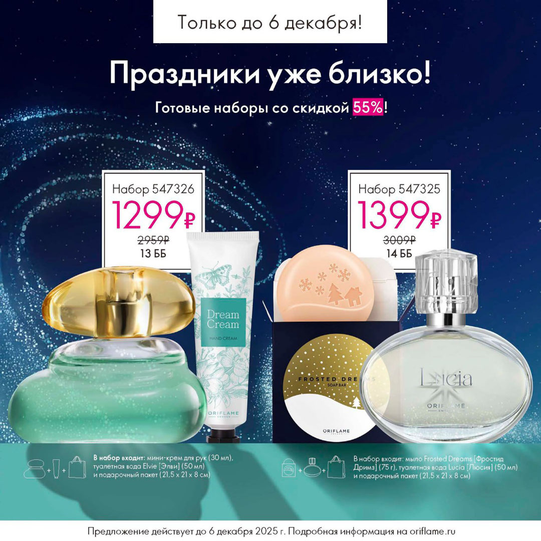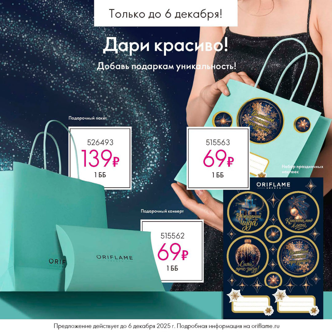С 16 ноября по 6 декабря 2025 включительно для неактивных партнёров Oriflame действует специальное предложение.