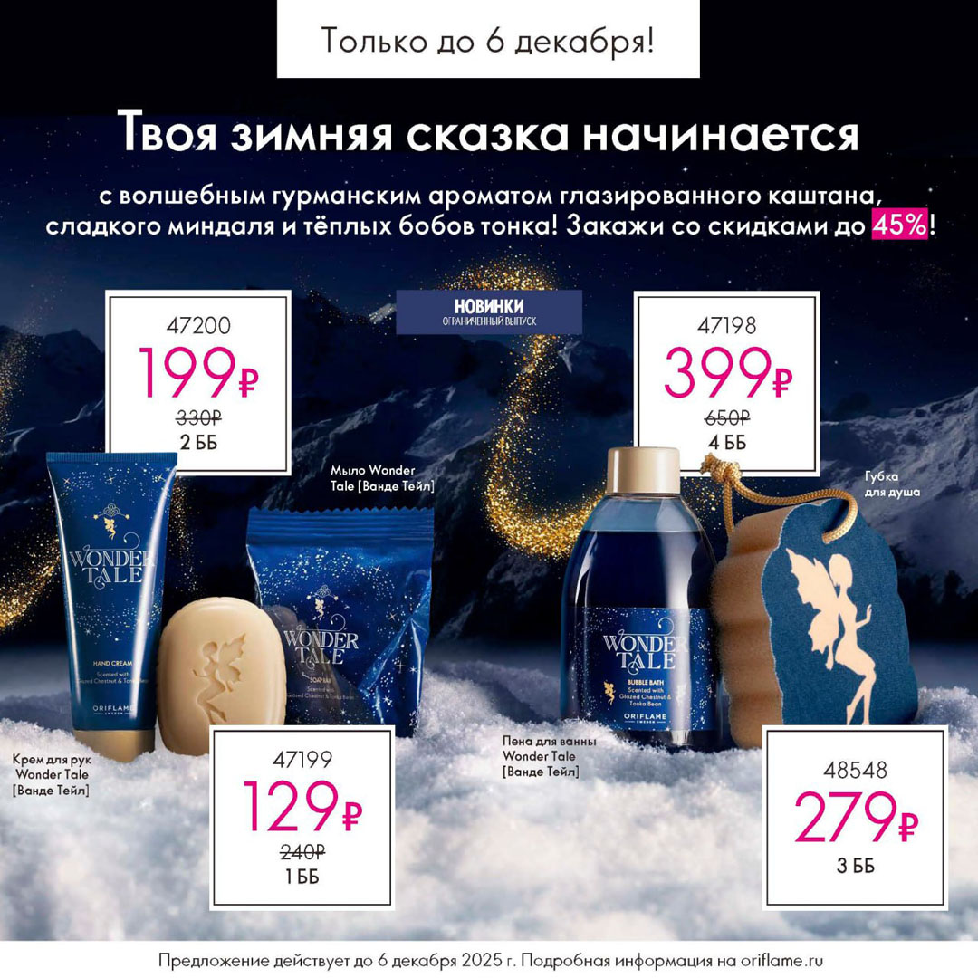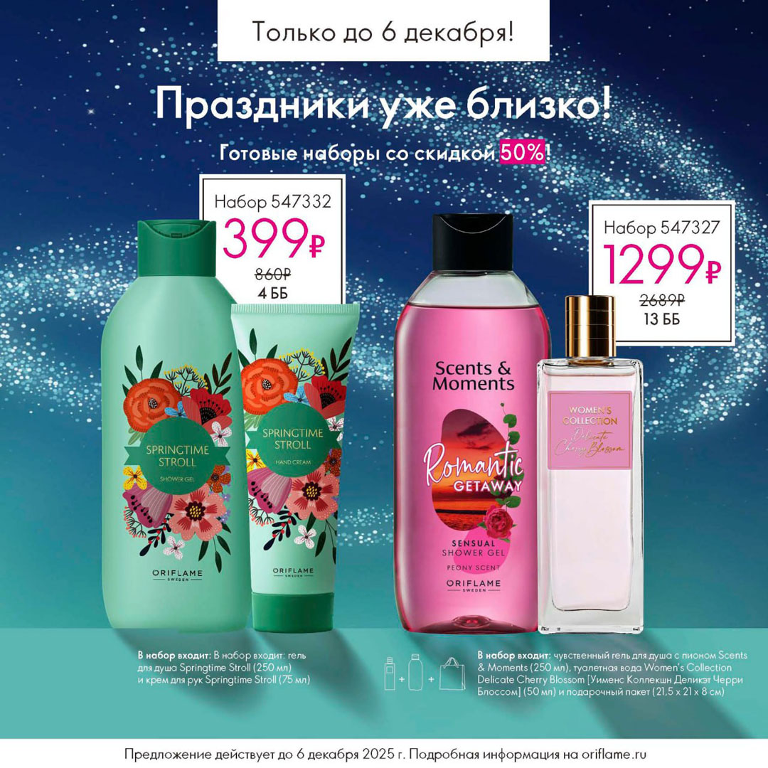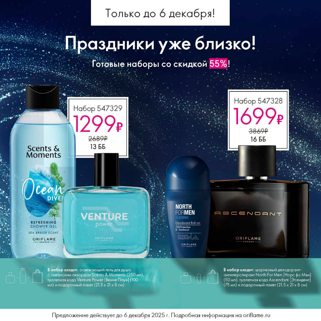 С 16 ноября по 6 декабря 2025 включительно для неактивных партнёров Oriflame действует специальное предложение.