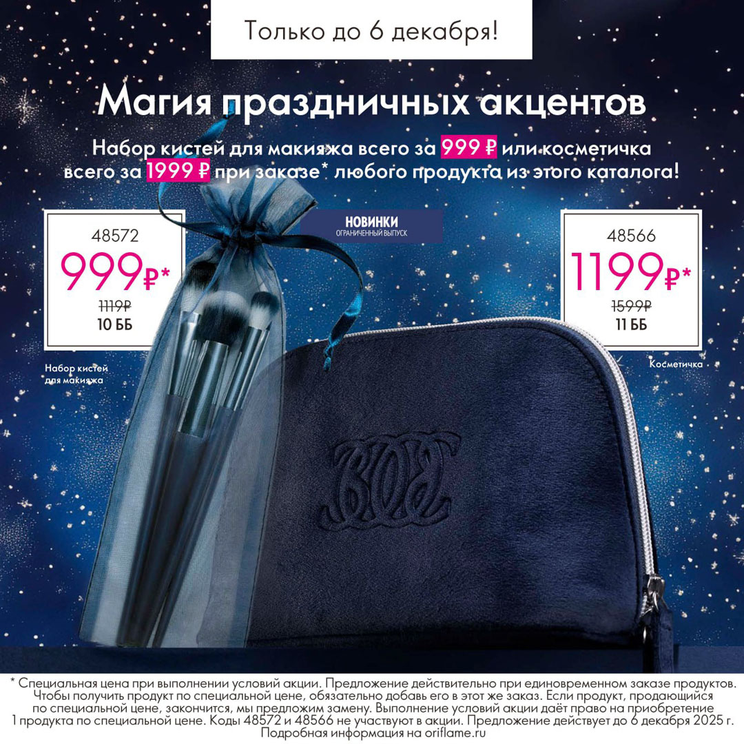 Акции и программы для консультантов в каталоге Oriflame 16 2025 с 16 ноября по 6 декабря 2025 года. Список обновляется. Новые акции добавляются в начало.