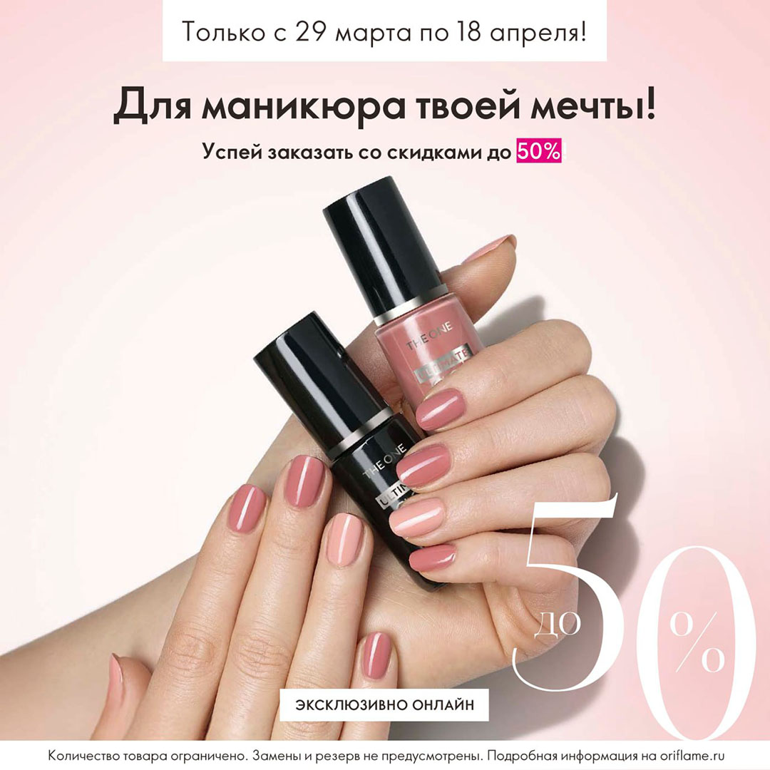 С 29 марта по 18 апреля действуют скидки 50% на продукты для маникюра – идеальный момент обновить вашу коллекцию к весенне-летнему сезону.