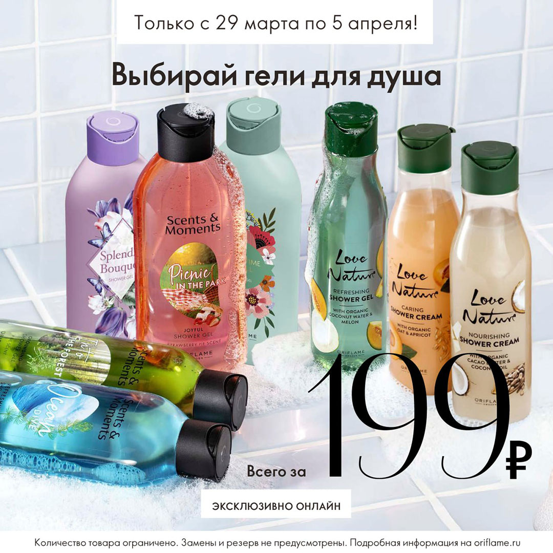 С 29 марта по 5 апреля включительно вы можете приобрести гели для душа всего за 199 рублей.