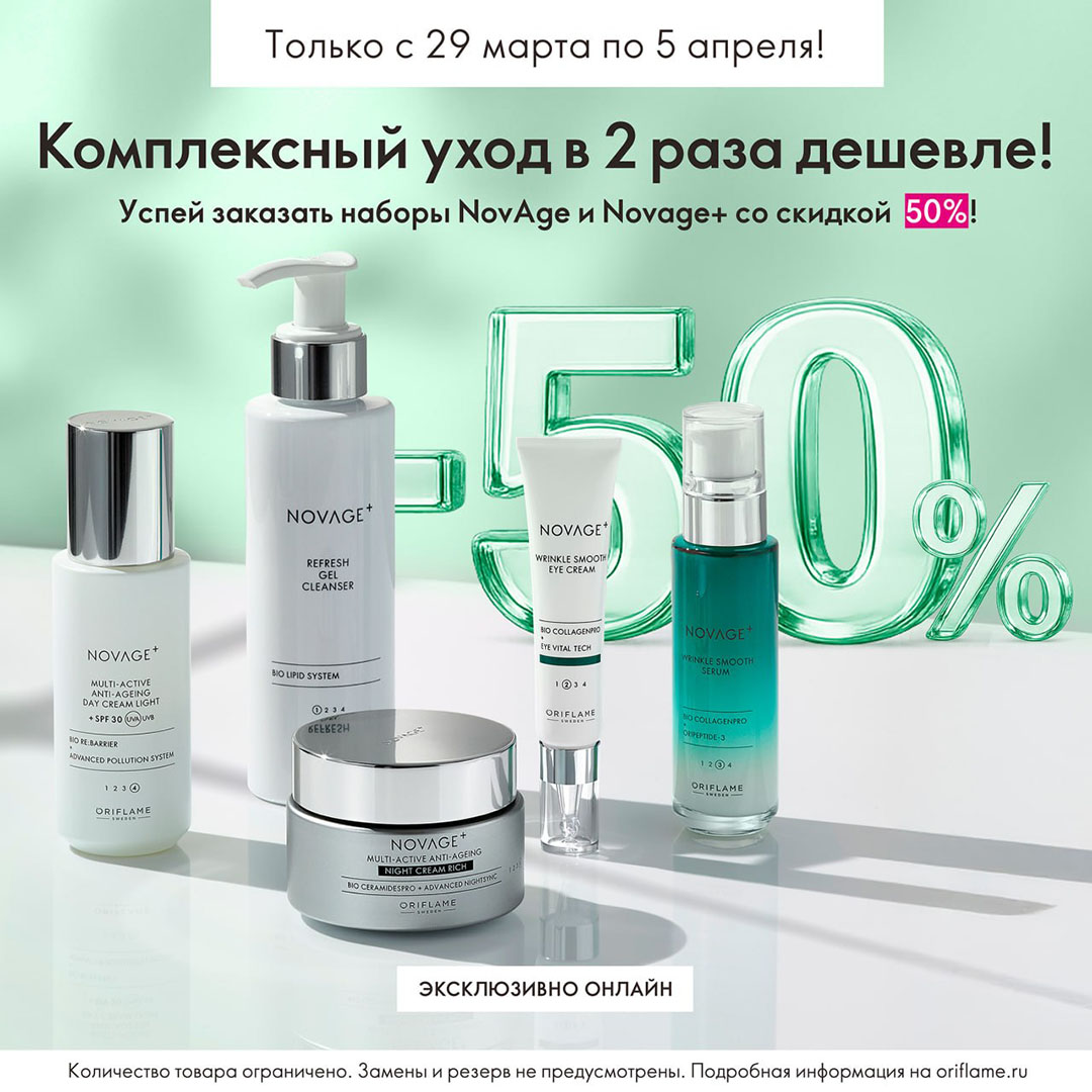 С 29 марта по 5 апреля включительно можно приобрести комплексный уход NovAge и Novage за полцены.