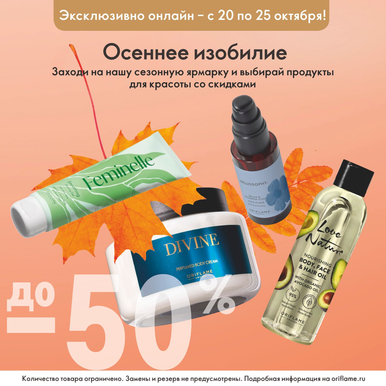 С 20 по 25 октября действует скидка до 50% на продукты для красоты.