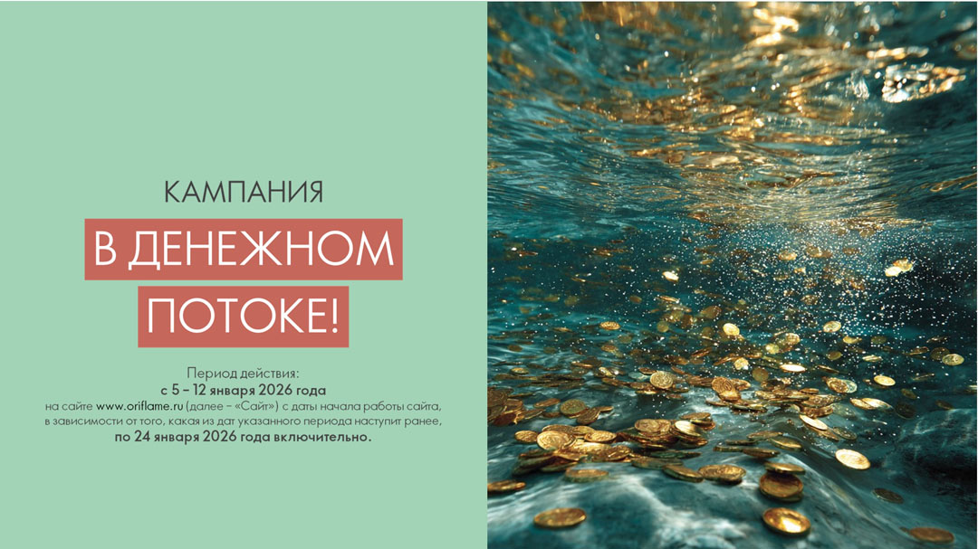 Период действия: c даты начала работы Сайта oriflame.ru (5.01-12.01.2026), в зависимости от того, какая из дат указанного периода наступит ранее, по 24 января 2026 года включительно.