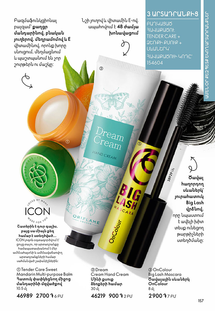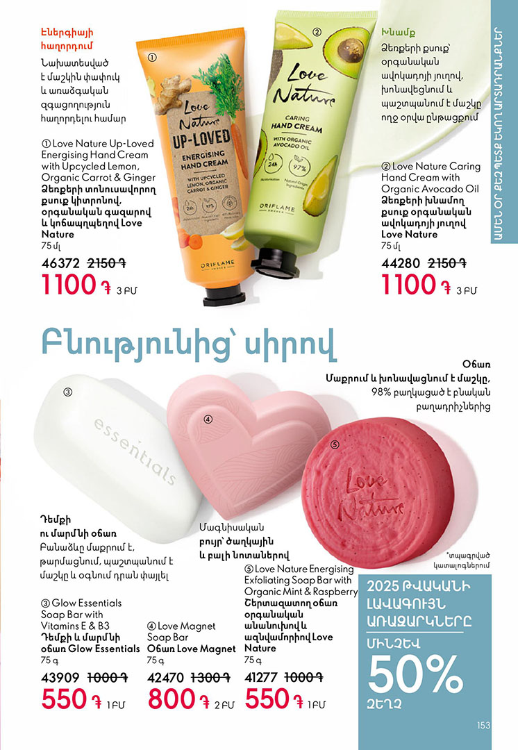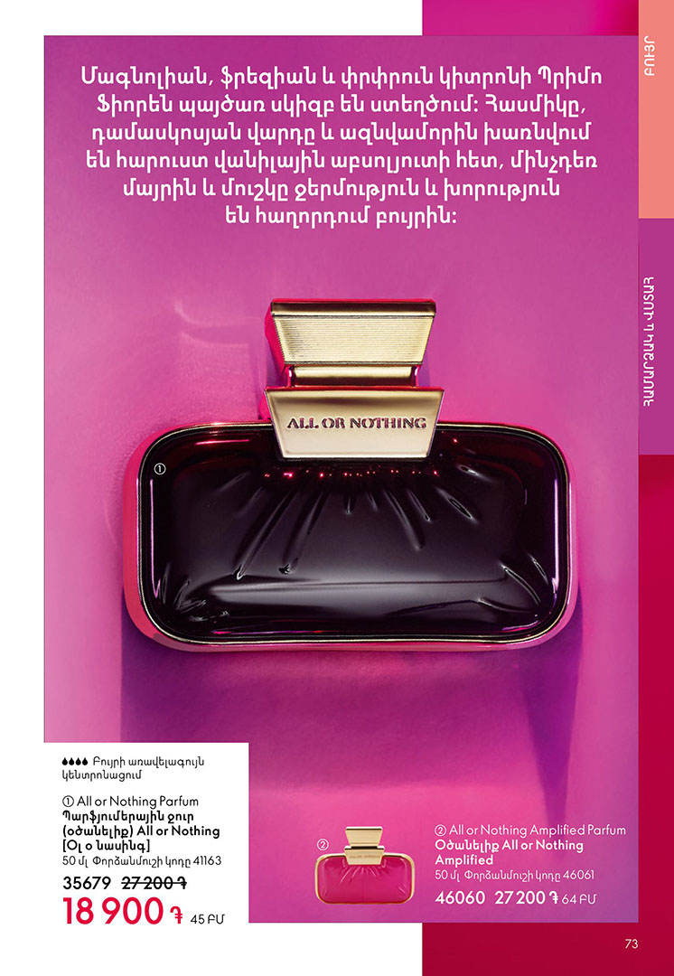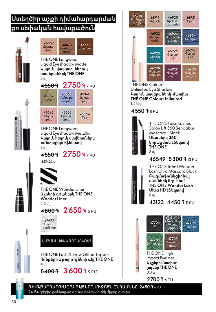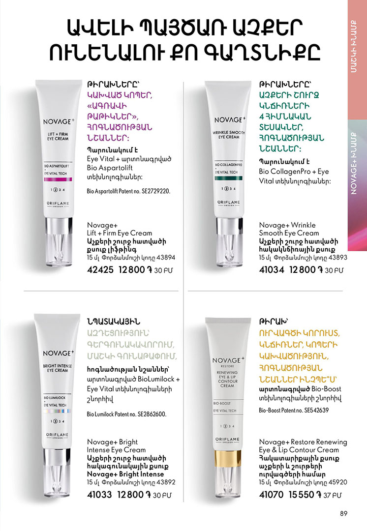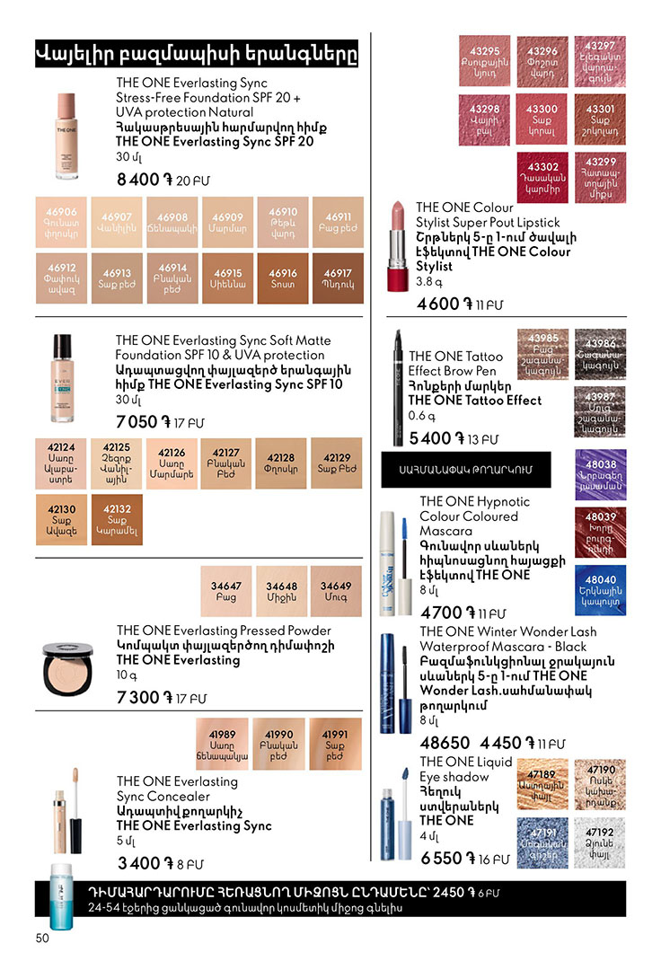 На этой странице можно посмотреть следующий каталог Орифлейм Армения с ценами в армянских драмах без регистрации на сайте. Заказ можно сделать самостоятельно на официальном сайте в личном кабинете. Если зарегистрироваться как консультант, то будет действовать скидка 20% на всю продукцию от цен в каталоге.