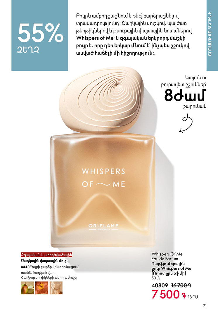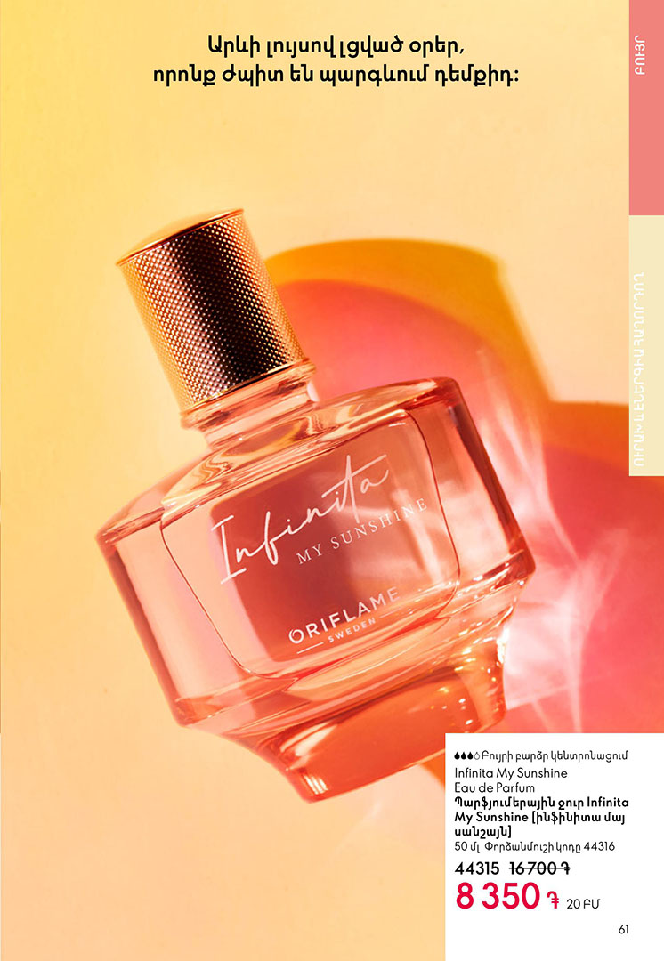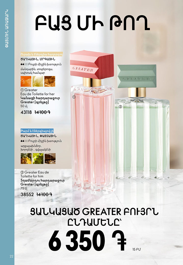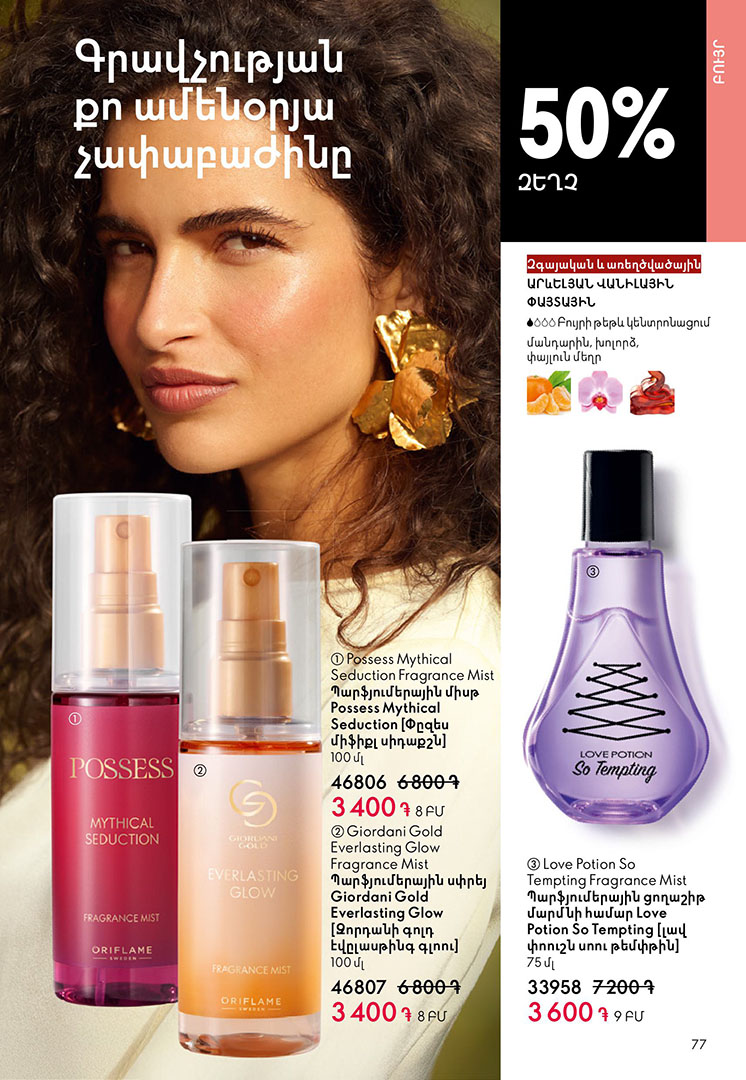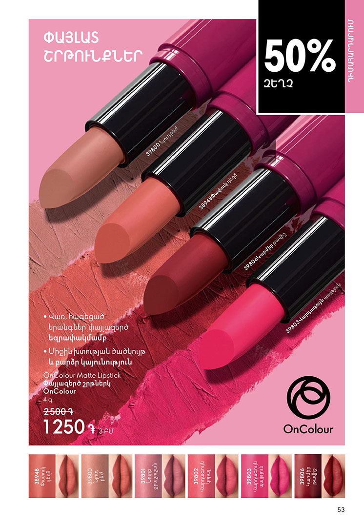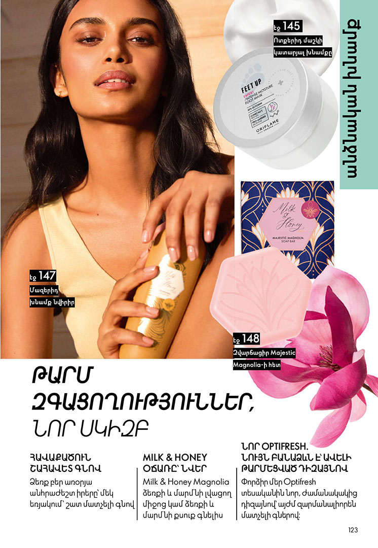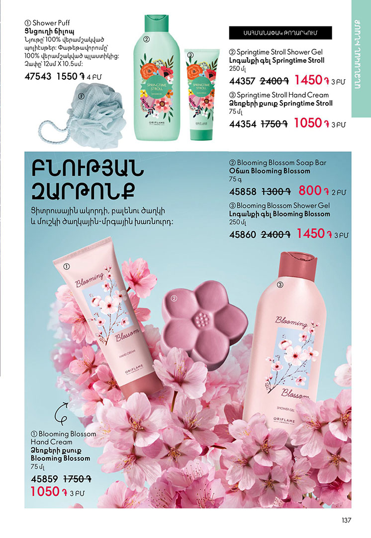 На этой странице можно посмотреть следующий каталог Орифлейм Армения с ценами в армянских драмах без регистрации на сайте. Заказ можно сделать самостоятельно на официальном сайте в личном кабинете. Если зарегистрироваться как консультант, то будет действовать скидка 20% на всю продукцию от цен в каталоге.