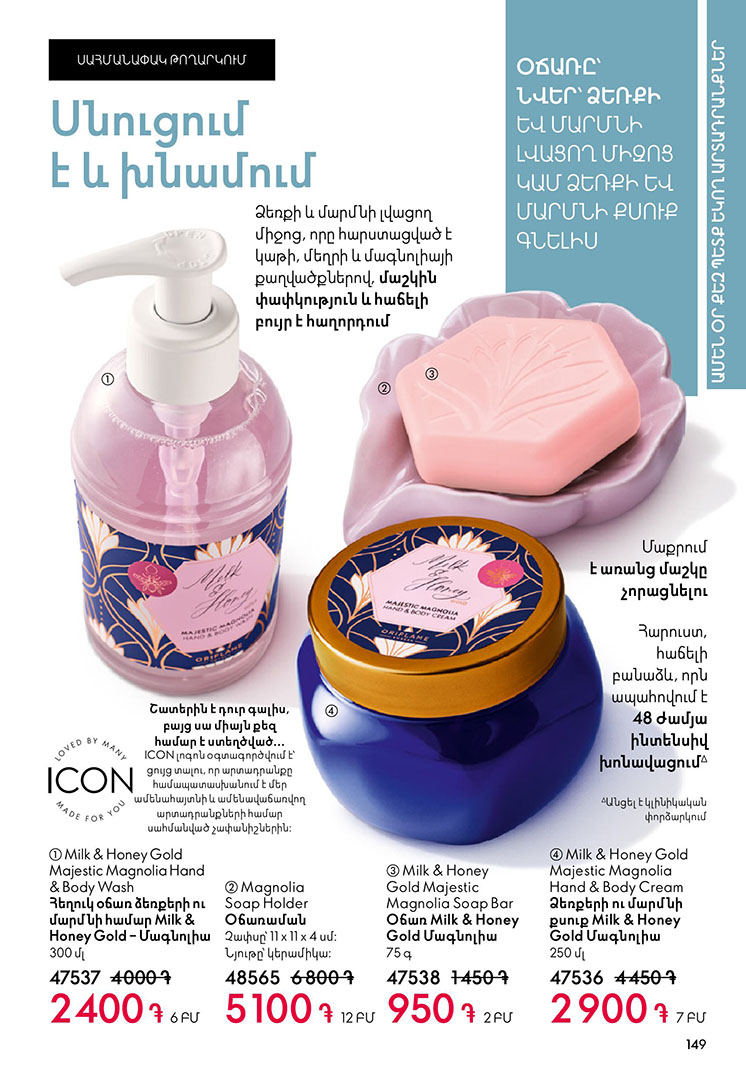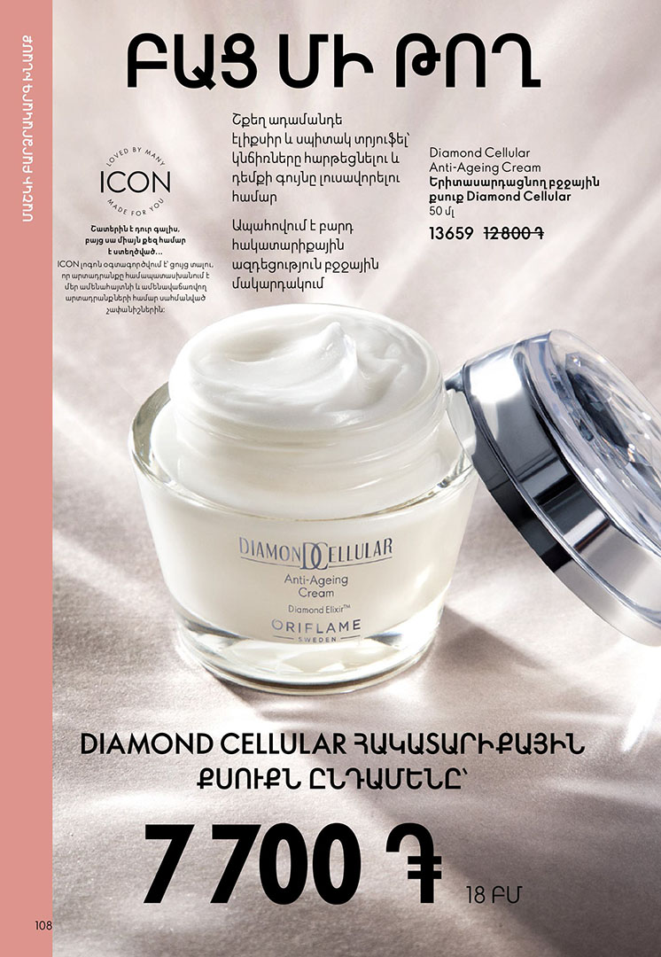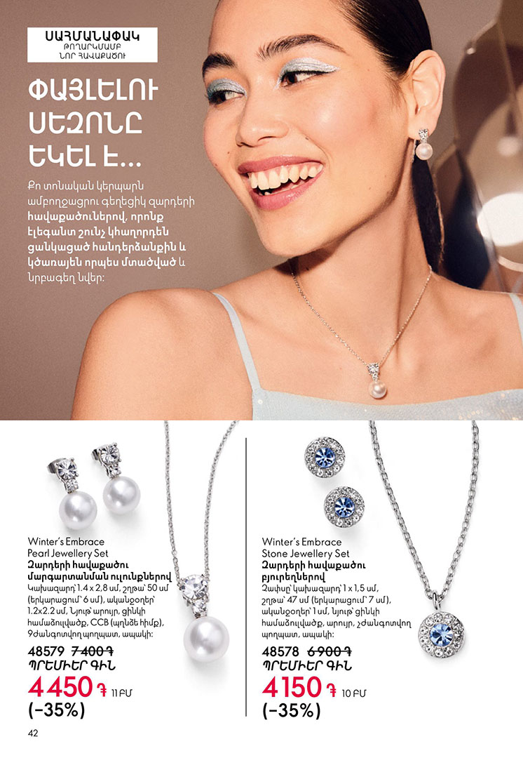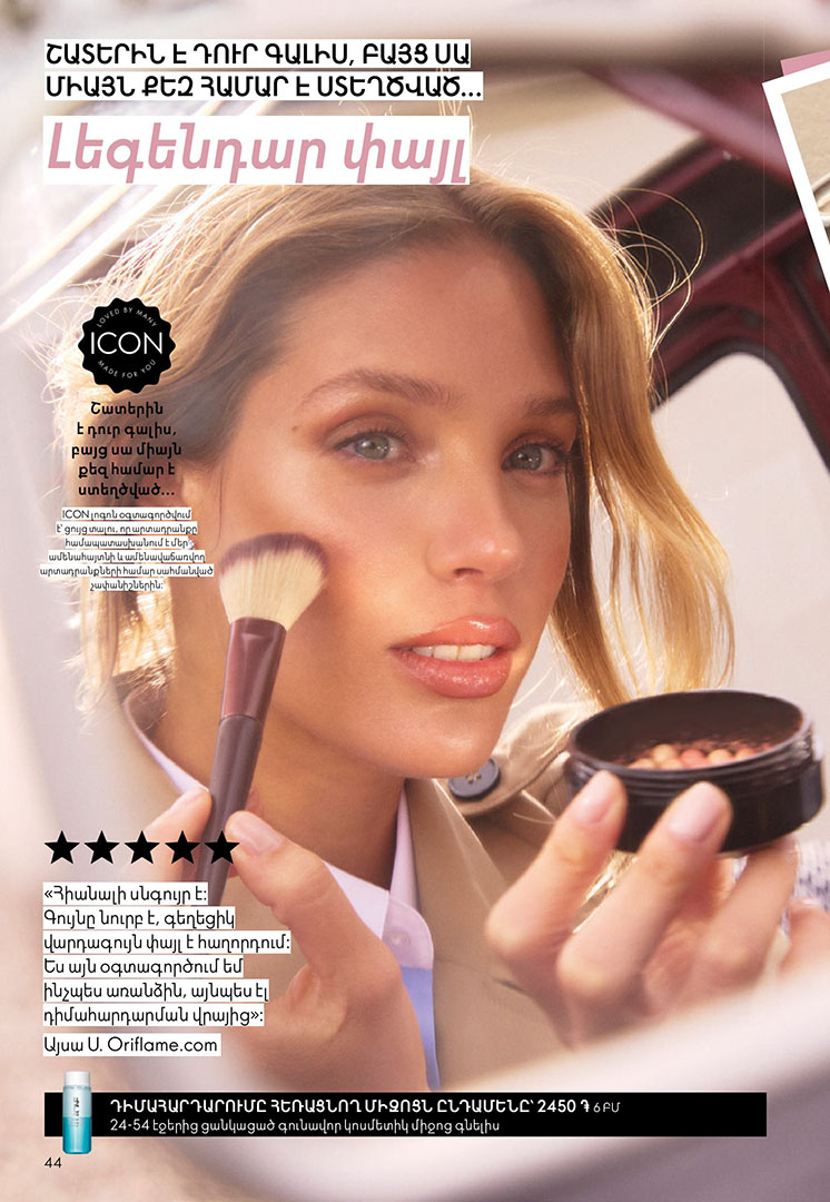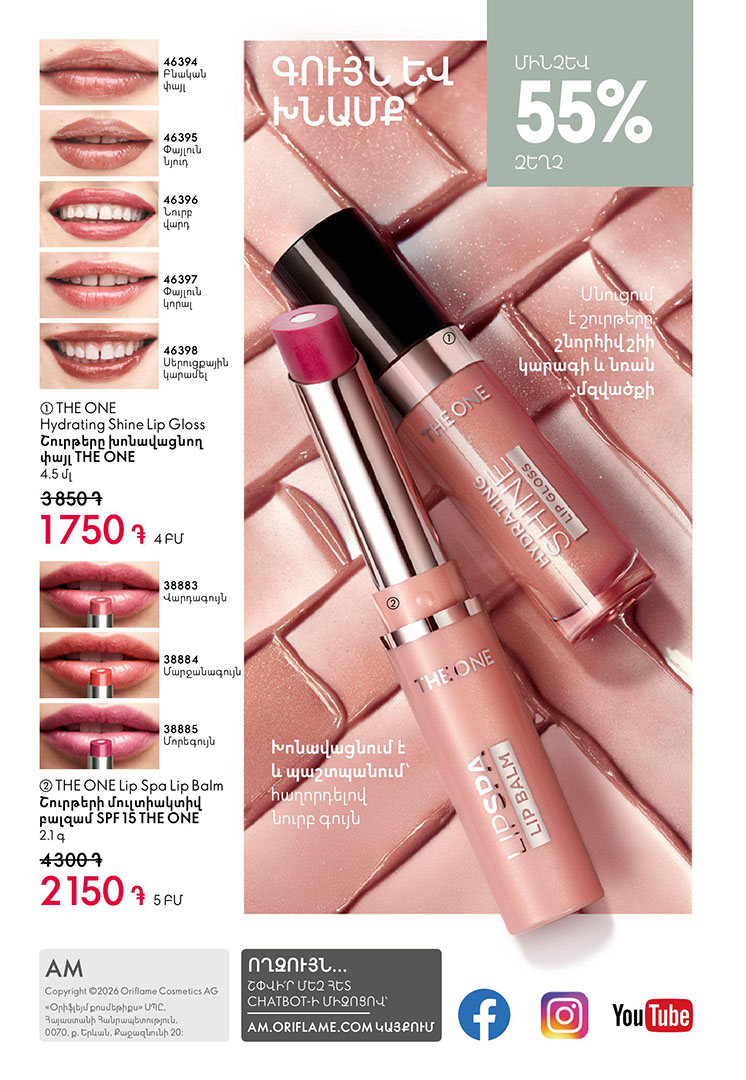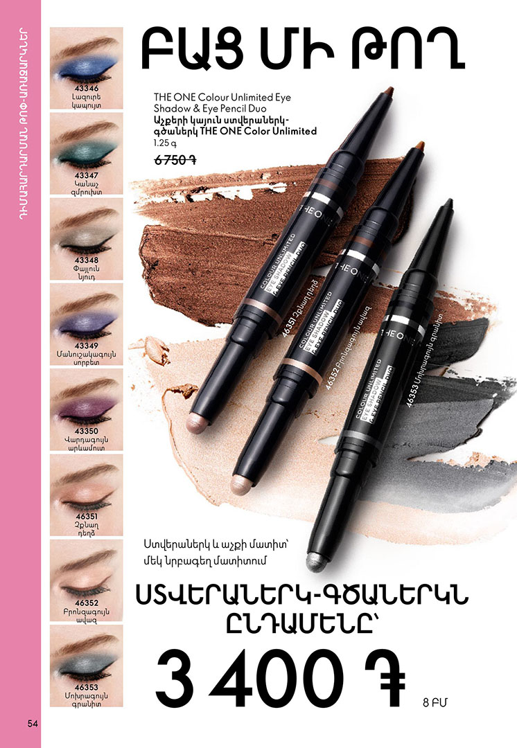 На этой странице можно посмотреть следующий каталог Орифлейм Армения с ценами в армянских драмах без регистрации на сайте. Заказ можно сделать самостоятельно на официальном сайте в личном кабинете. Если зарегистрироваться как консультант, то будет действовать скидка 20% на всю продукцию от цен в каталоге.