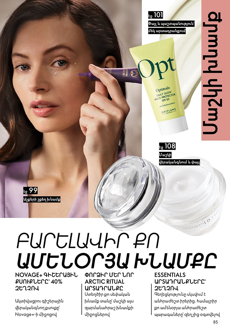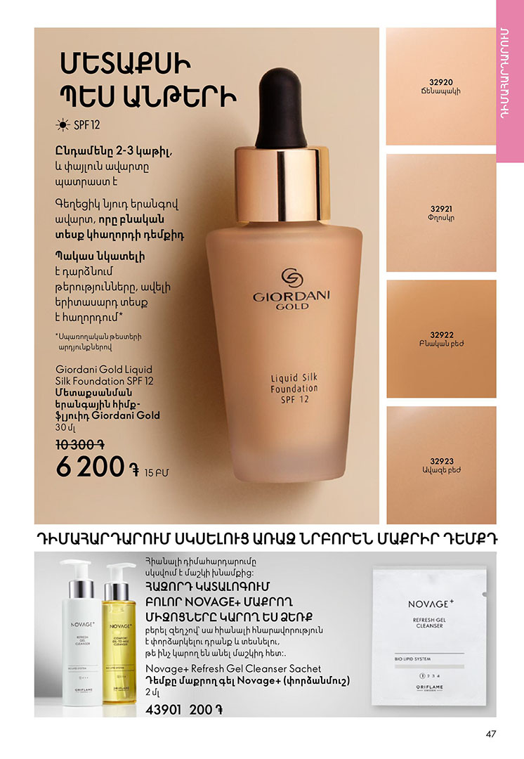 Можно полистать действующий каталог Орифлейм и сравнить цены на продукцию с ценами в этом каталоге. Специальные каталоги NovAge и Wellness, вкладки со специальными предложениями и распродажами смотрите на странице каталоги для Армении.