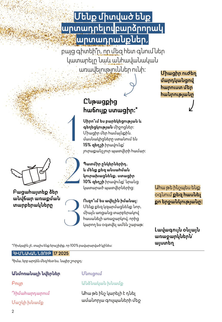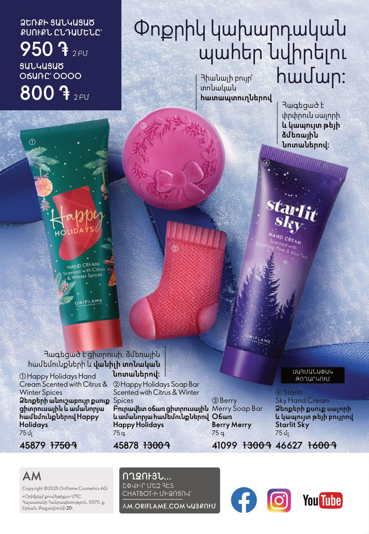 Каталог Орифлейм 17 2025 года для Армении с ценами в армянских драмах. Предложение действует с 7 по 27 декабря 2025 года.
