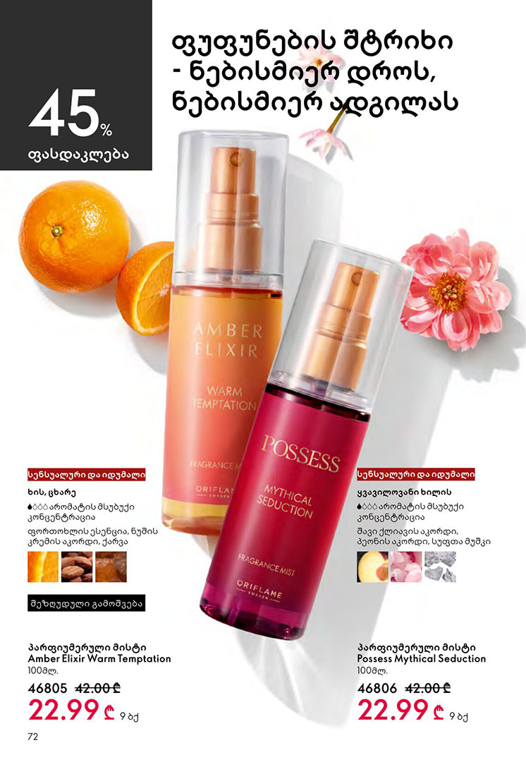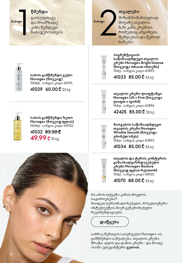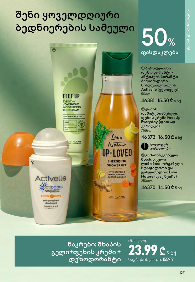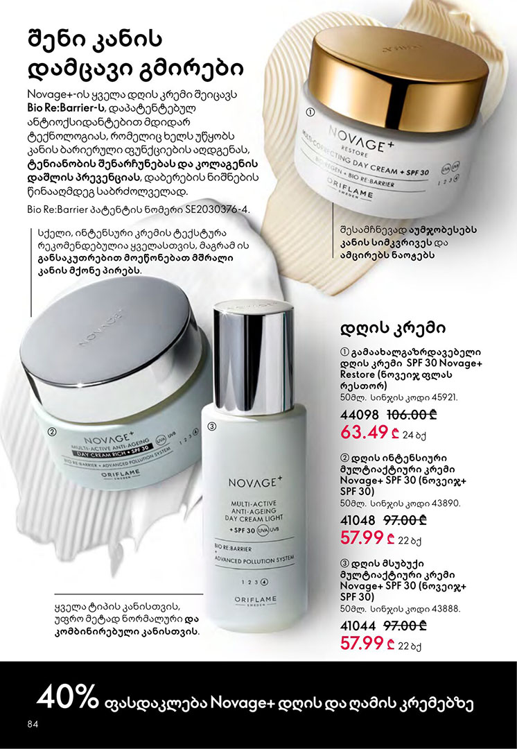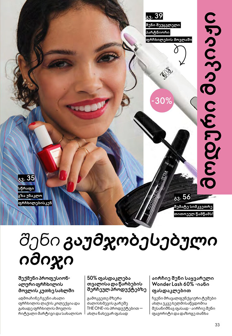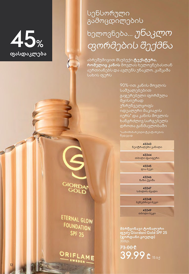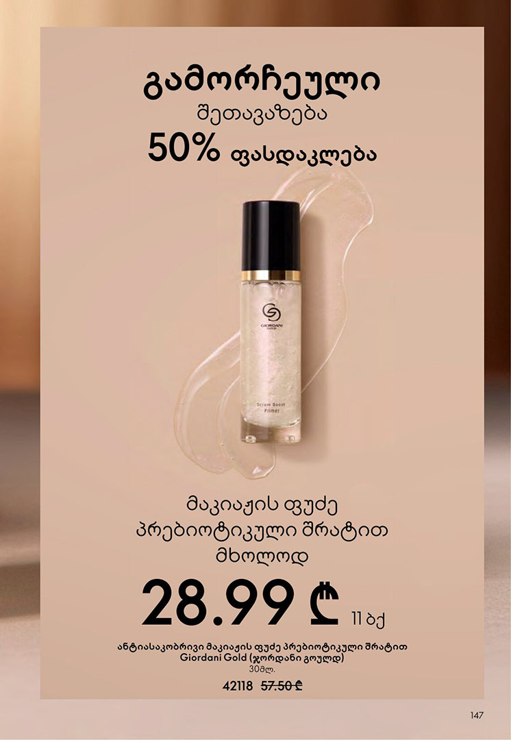 На этой странице можно посмотреть следующий каталог Орифлейм Грузия с ценами в грузинских лари без регистрации на сайте. Заказ можно сделать самостоятельно на официальном сайте в личном кабинете. Если зарегистрироваться как консультант, то будет действовать скидка 20% на всю продукцию от цен в каталоге.