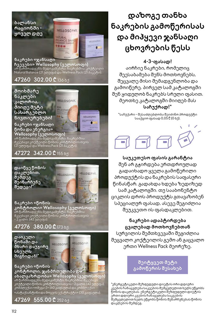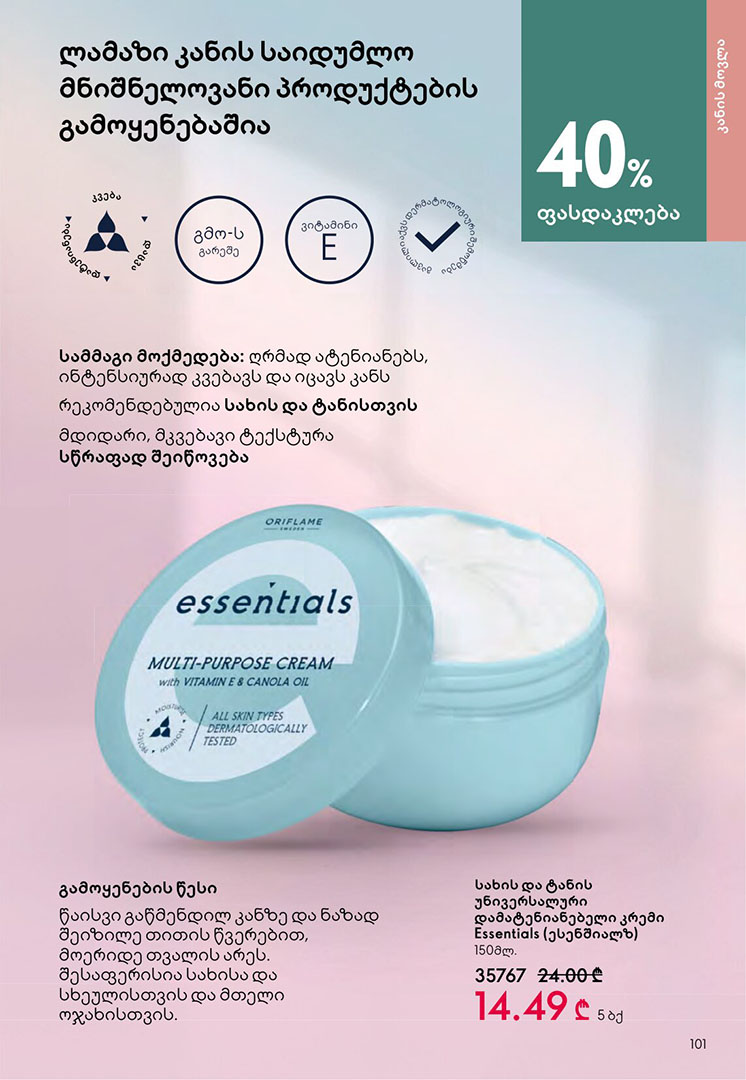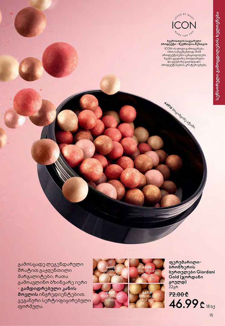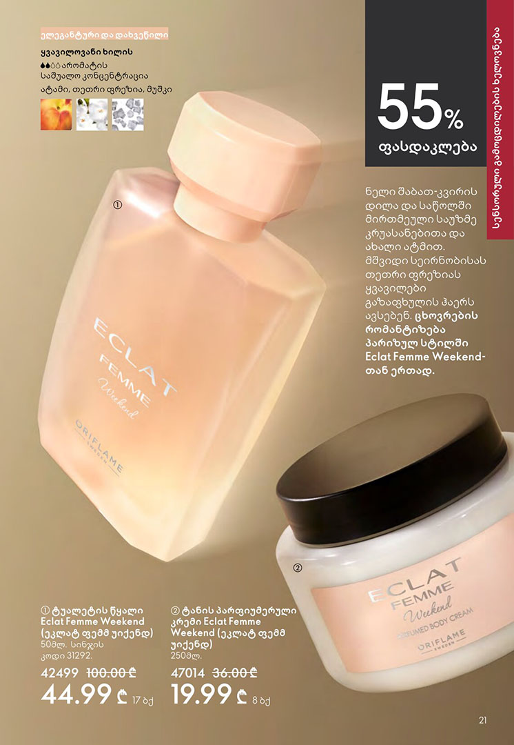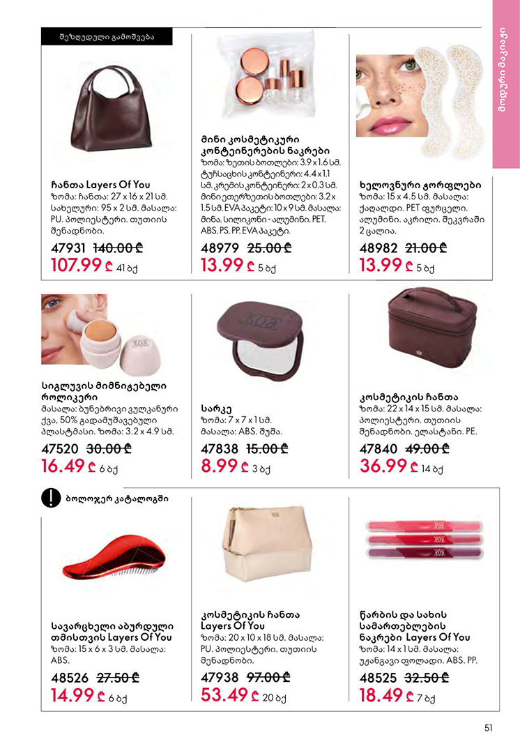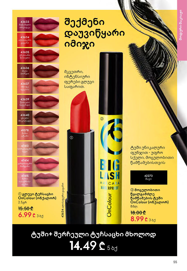 На этой странице можно посмотреть следующий каталог Орифлейм Грузия с ценами в грузинских лари без регистрации на сайте. Заказ можно сделать самостоятельно на официальном сайте в личном кабинете. Если зарегистрироваться как консультант, то будет действовать скидка 20% на всю продукцию от цен в каталоге.