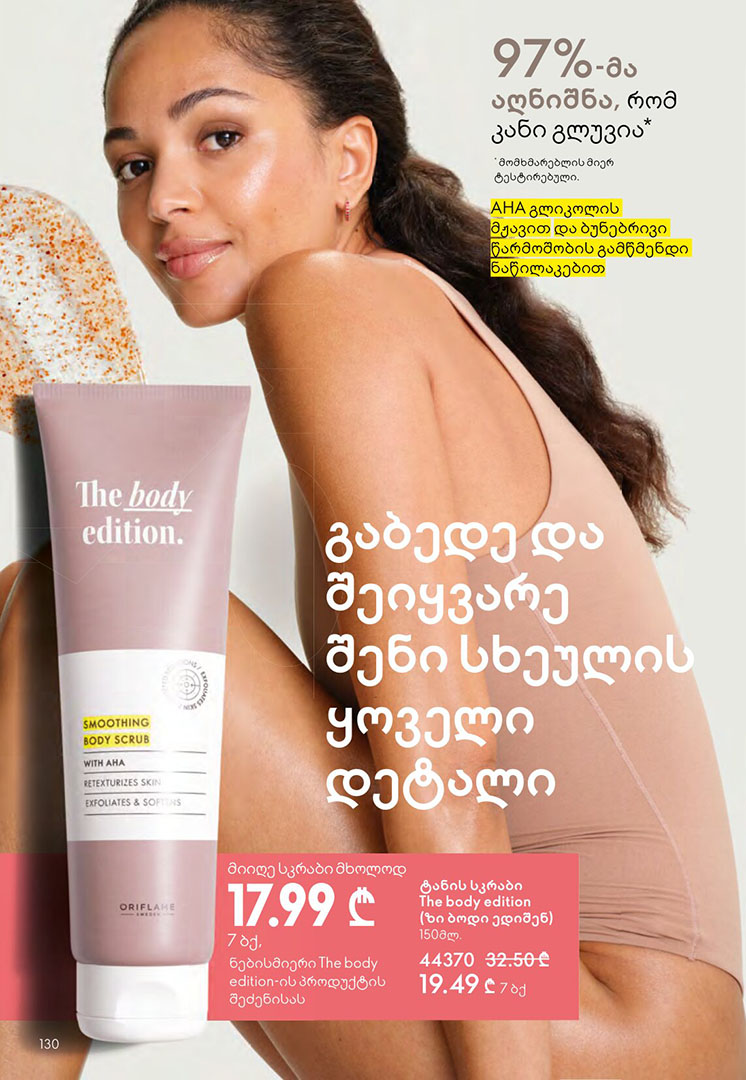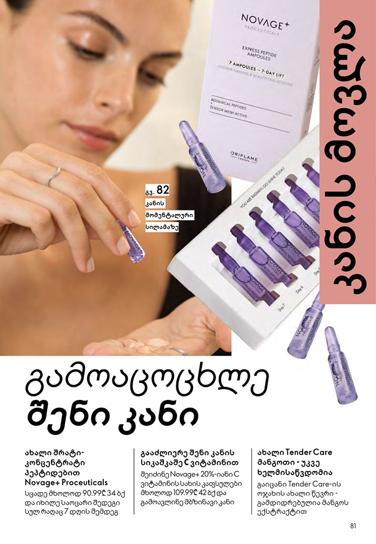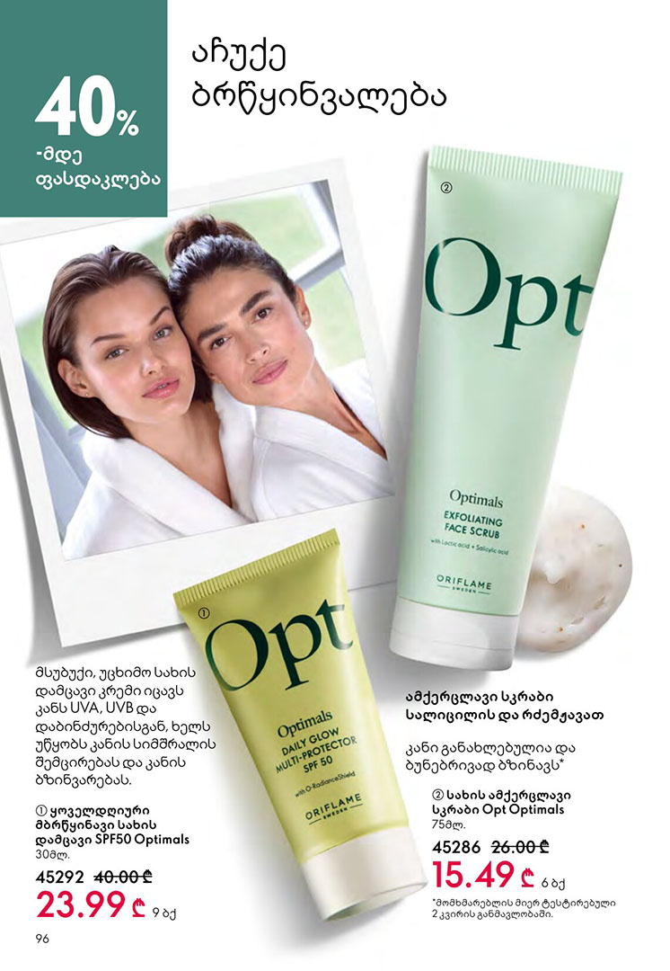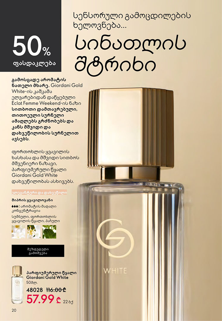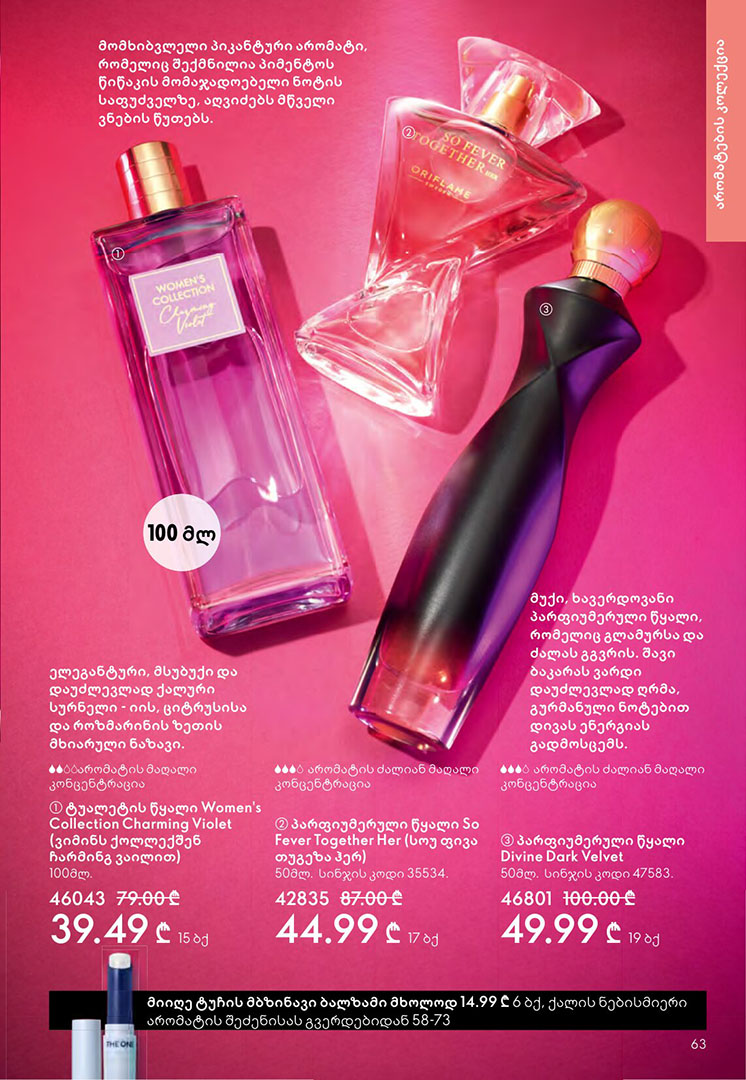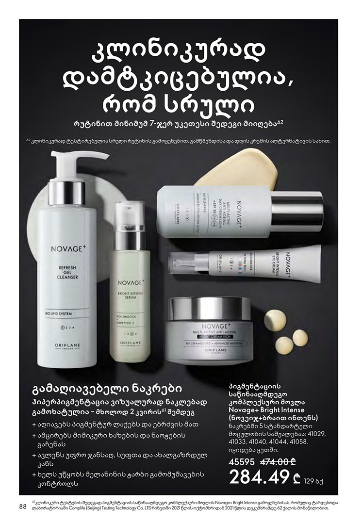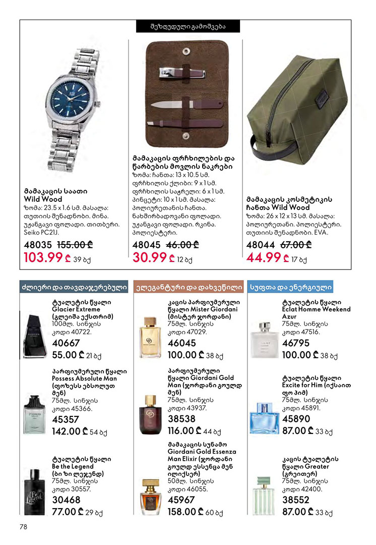 На этой странице можно посмотреть следующий каталог Орифлейм Грузия с ценами в грузинских лари без регистрации на сайте. Заказ можно сделать самостоятельно на официальном сайте в личном кабинете. Если зарегистрироваться как консультант, то будет действовать скидка 20% на всю продукцию от цен в каталоге.