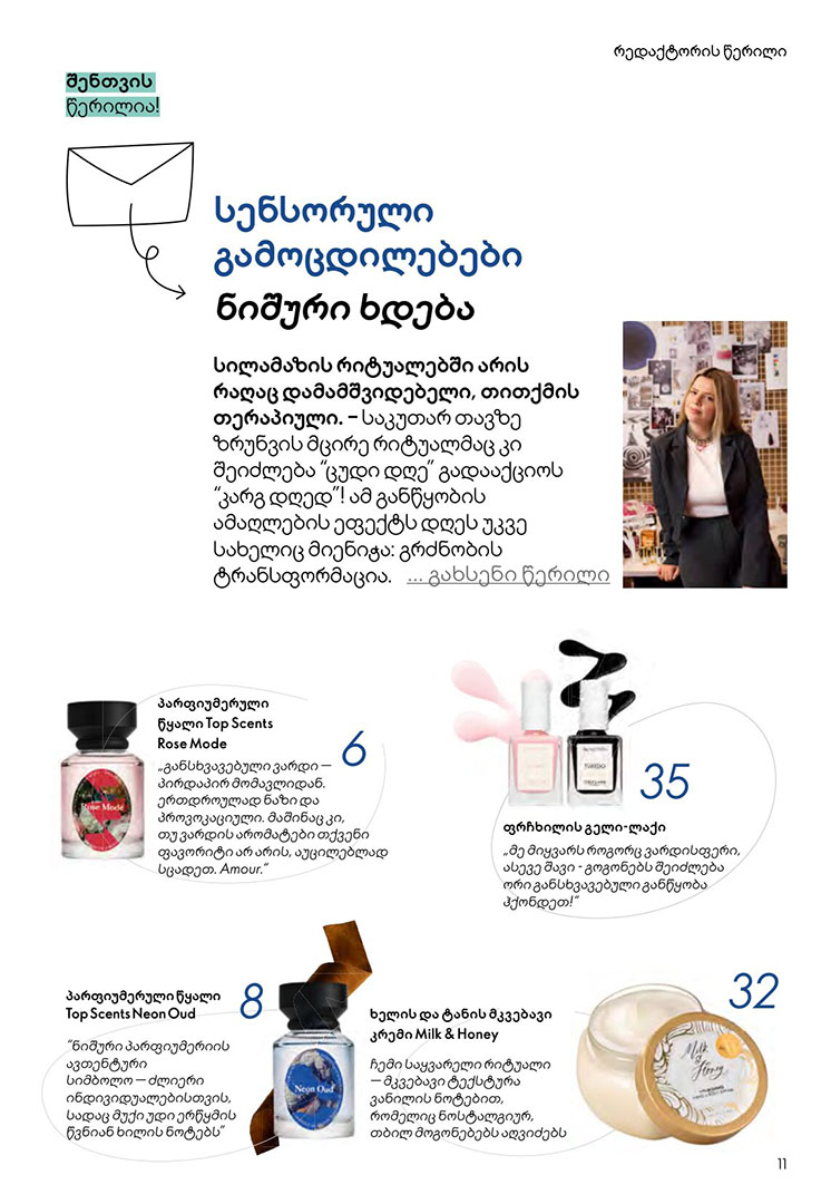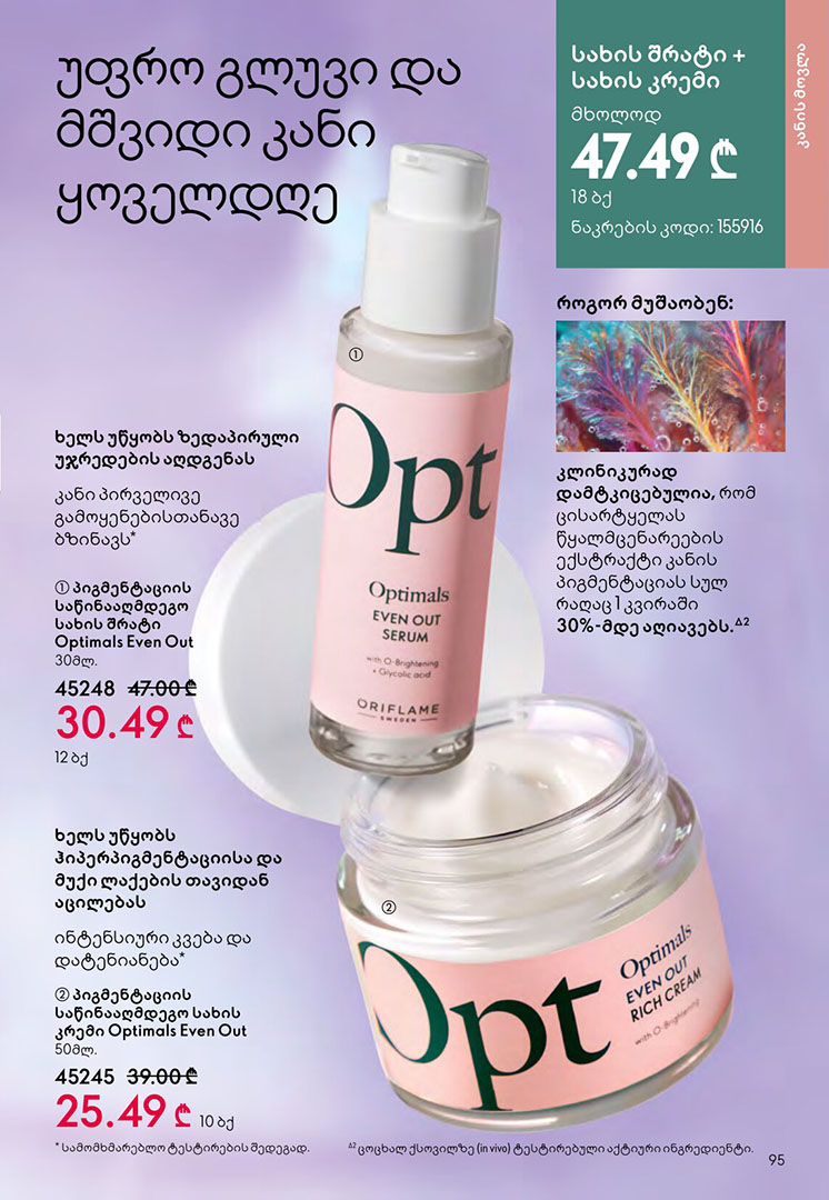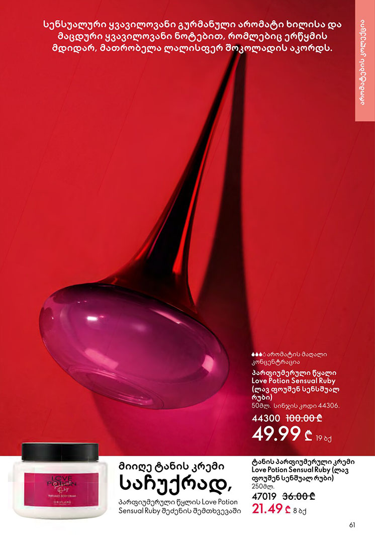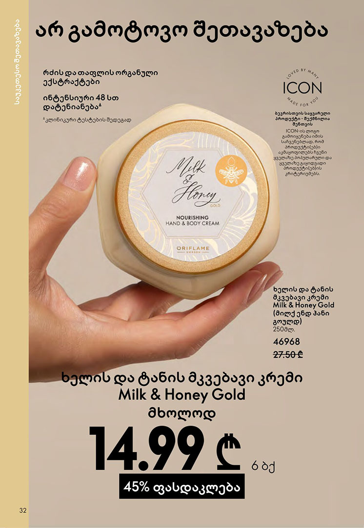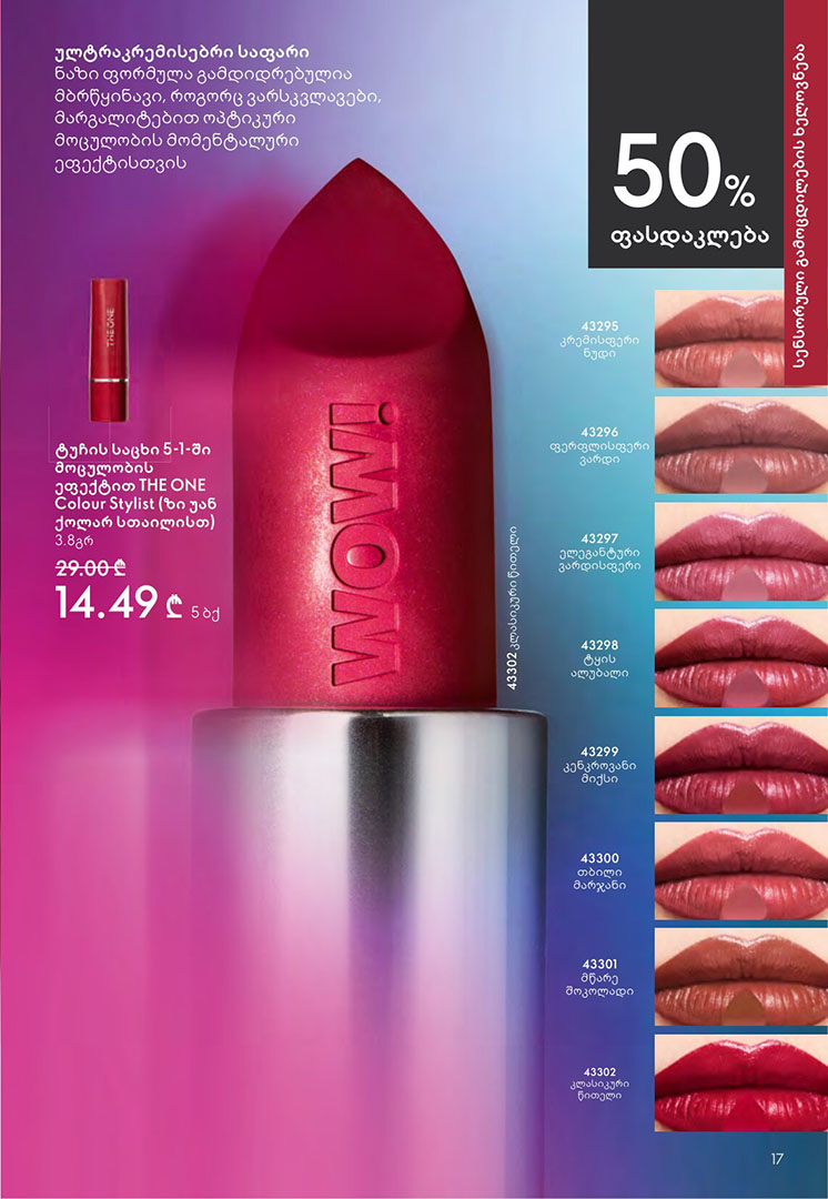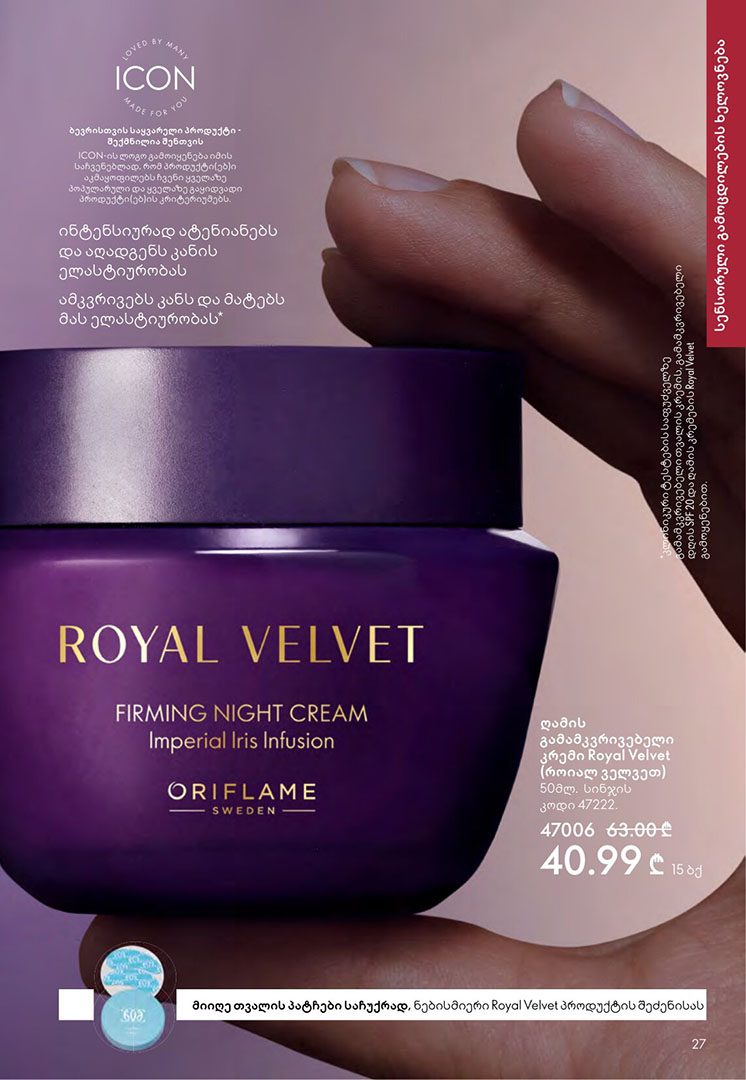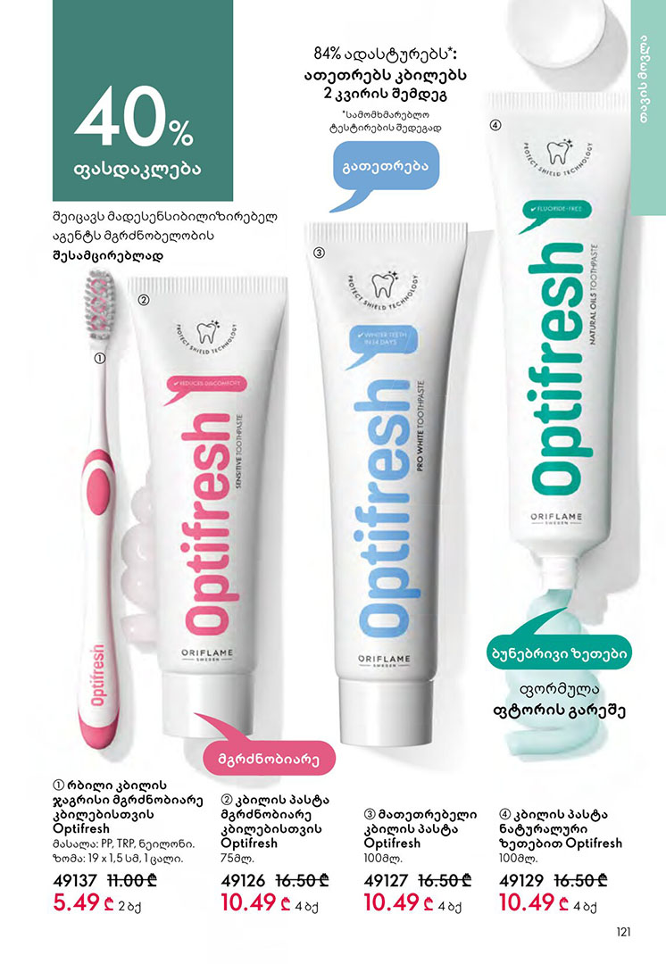 На этой странице можно посмотреть следующий каталог Орифлейм Грузия с ценами в грузинских лари без регистрации на сайте. Заказ можно сделать самостоятельно на официальном сайте в личном кабинете. Если зарегистрироваться как консультант, то будет действовать скидка 20% на всю продукцию от цен в каталоге.