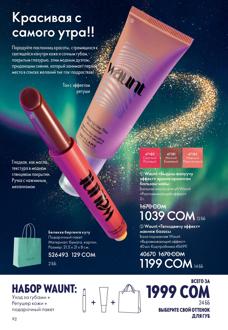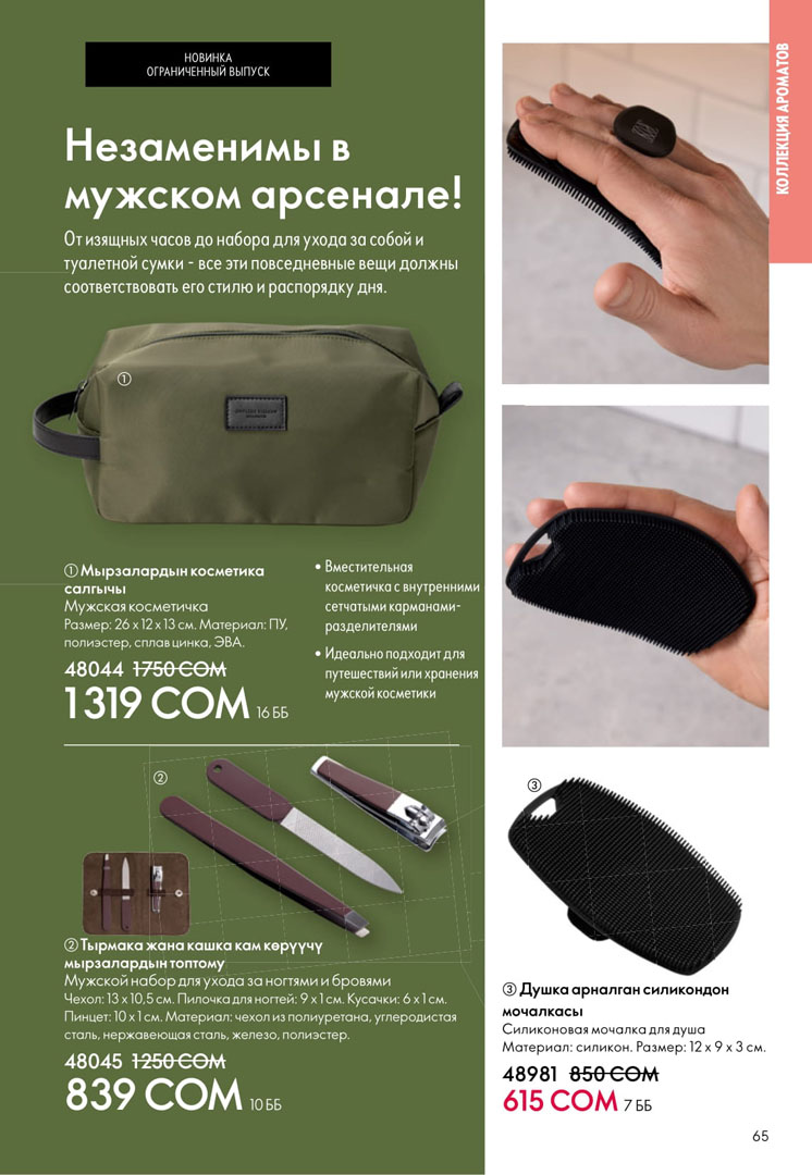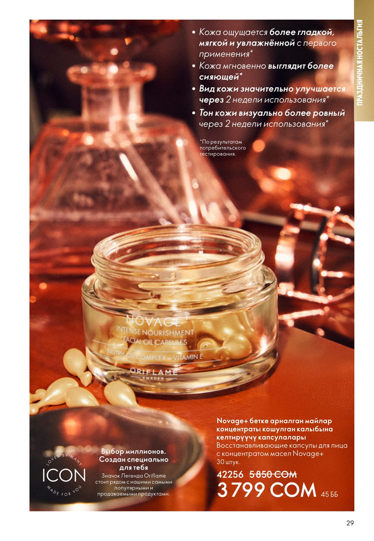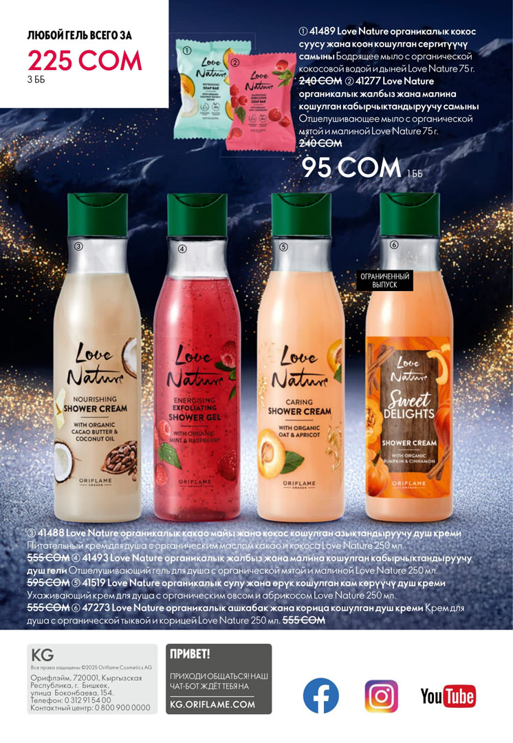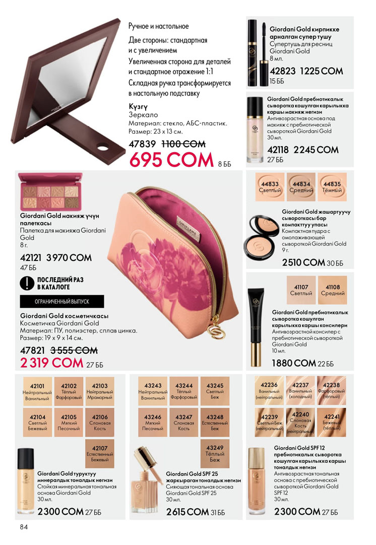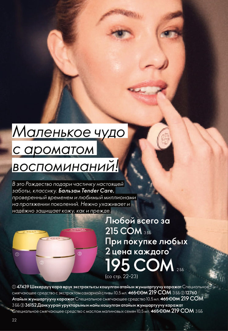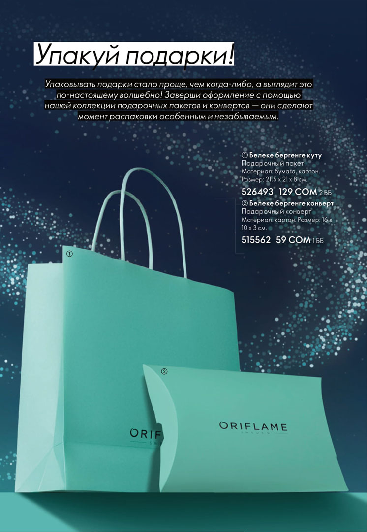 На этой странице можно посмотреть актуальный действующий каталог Орифлейм Кыргызстан с ценами в сомах без регистрации. Заказ можно сделать самостоятельно через личный кабинет консультанта на официальном сайте Кыргызстана. После регистрации в качестве консультанта действует скидка 20% на всю продукцию от цен в каталоге.
