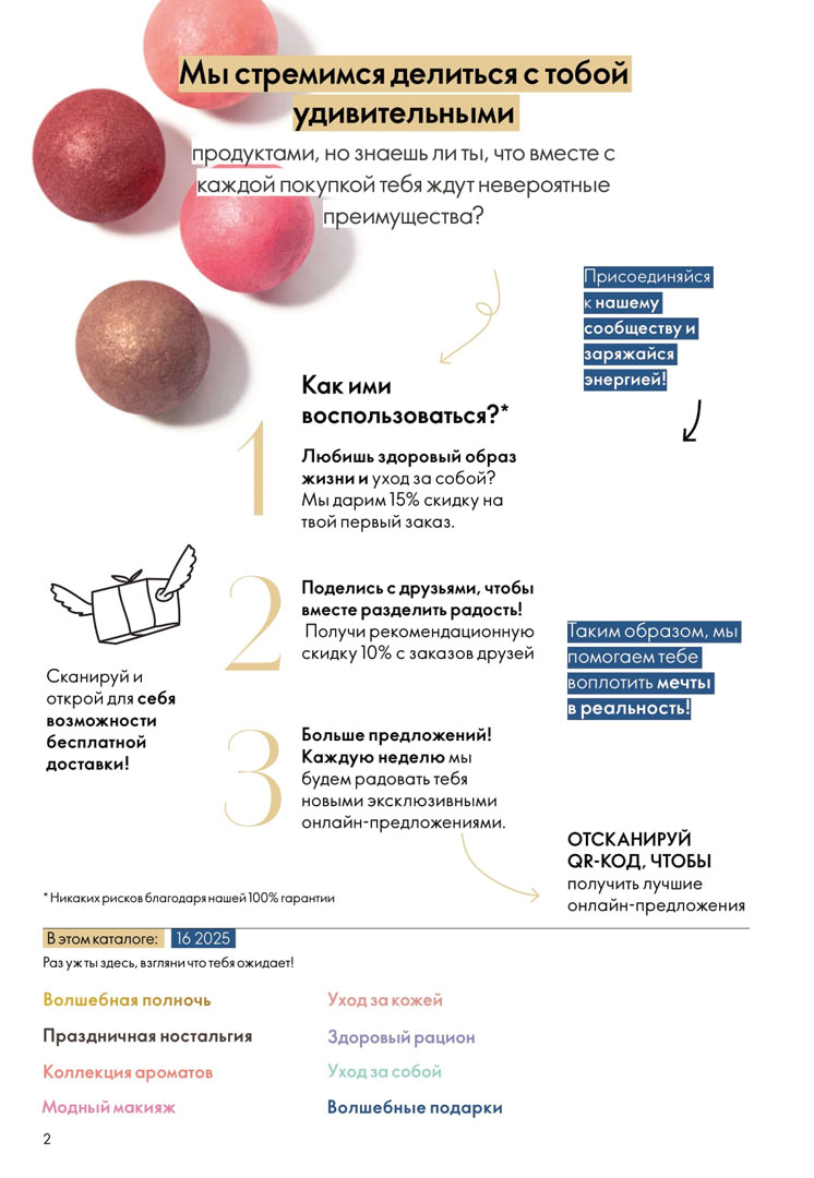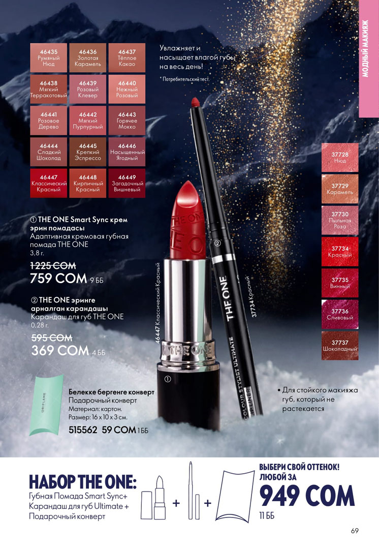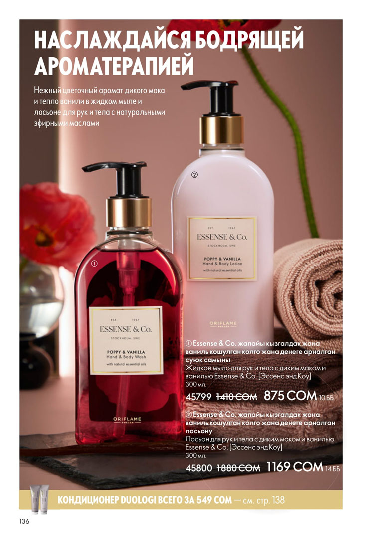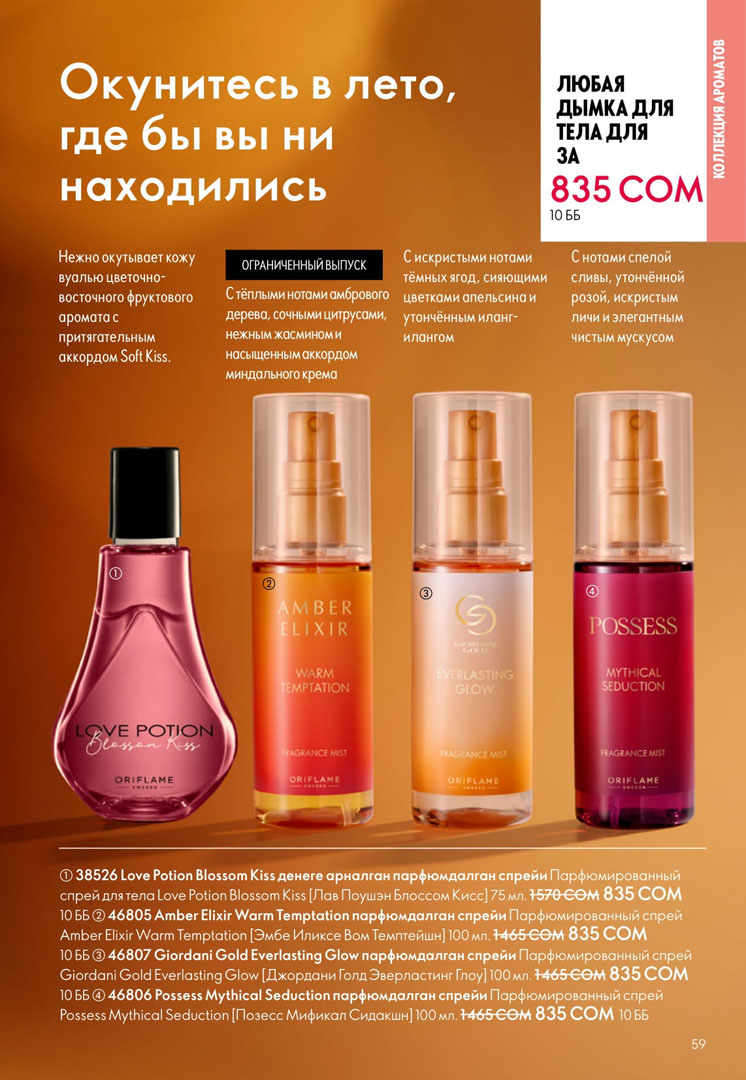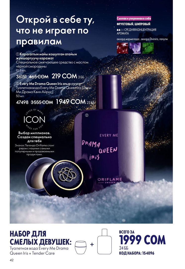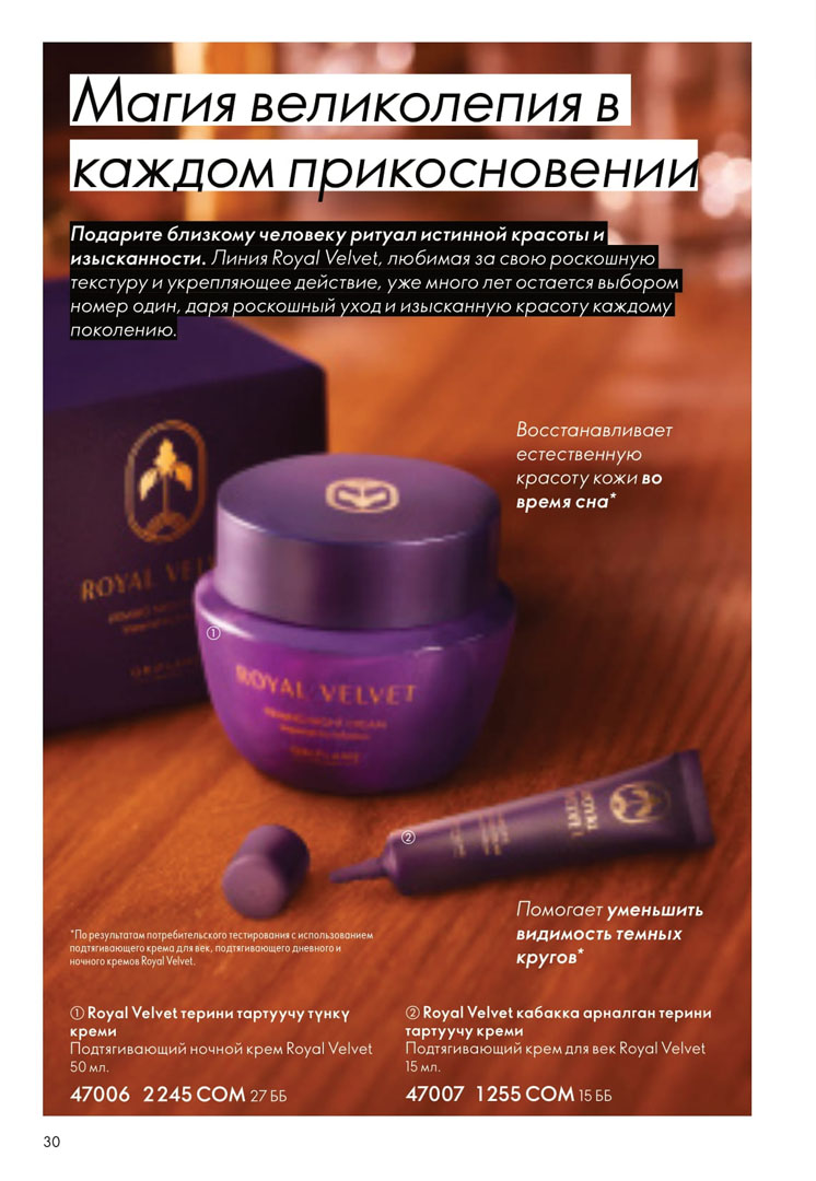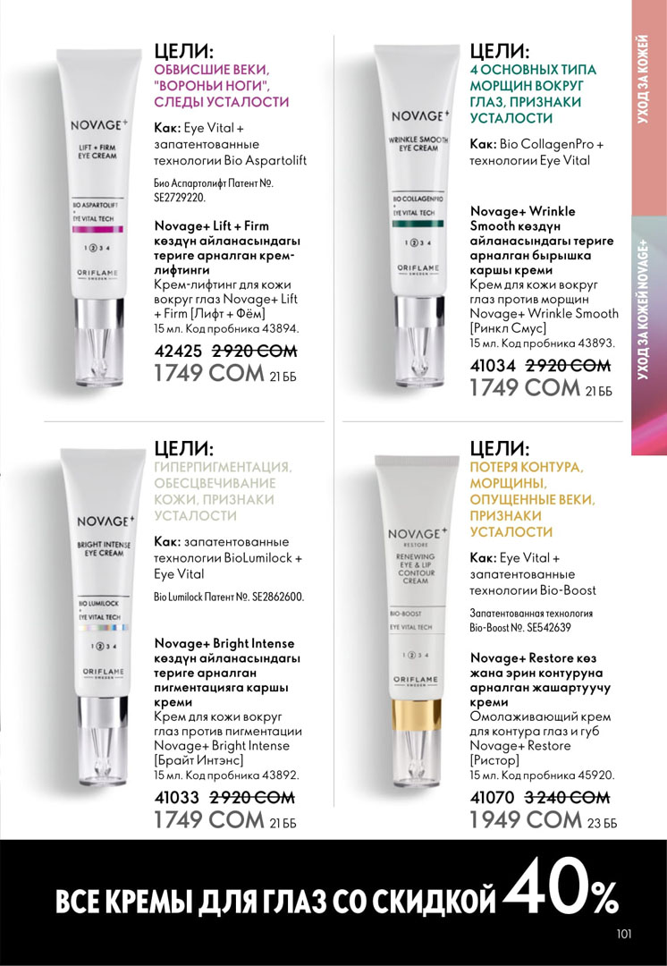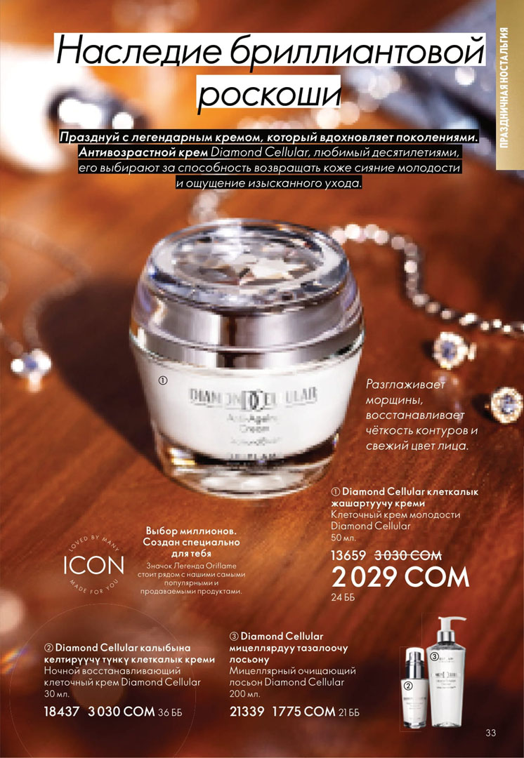 На этой странице можно посмотреть актуальный действующий каталог Орифлейм Кыргызстан с ценами в сомах без регистрации. Заказ можно сделать самостоятельно через личный кабинет консультанта на официальном сайте Кыргызстана. После регистрации в качестве консультанта действует скидка 20% на всю продукцию от цен в каталоге.