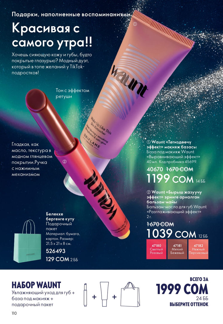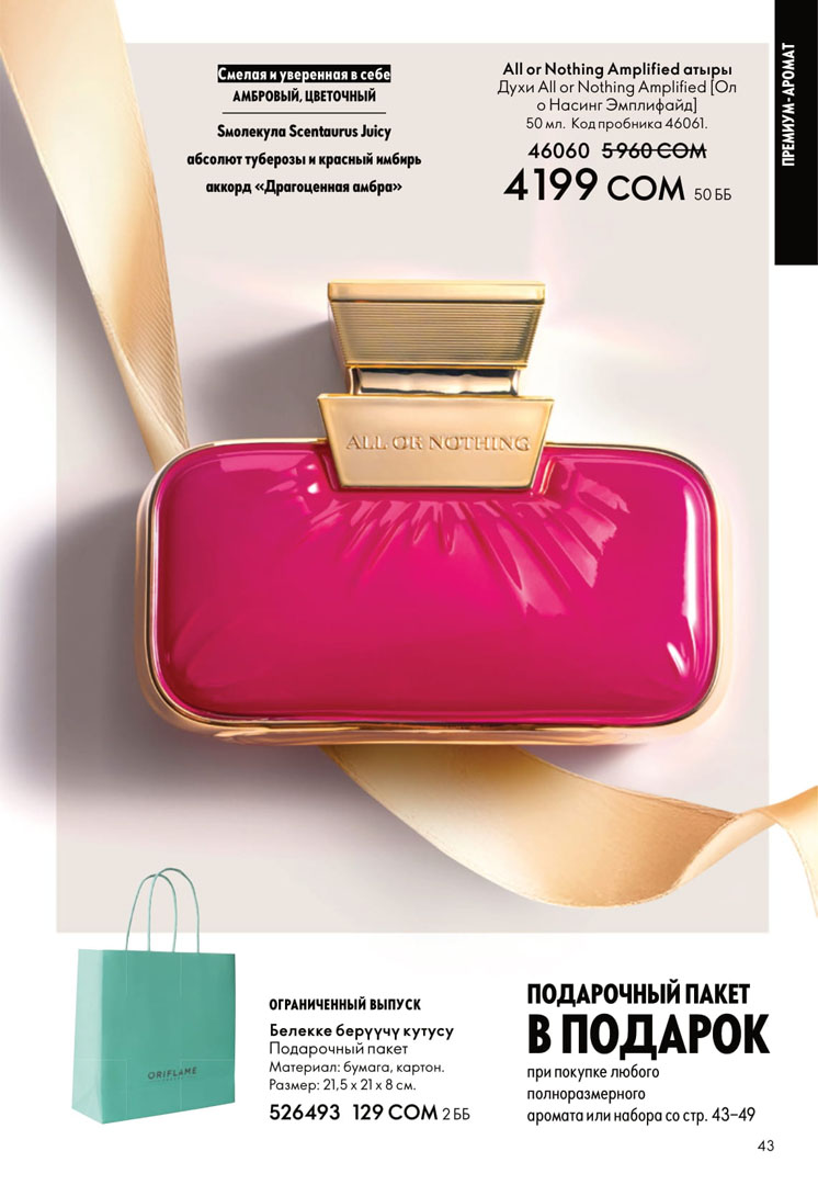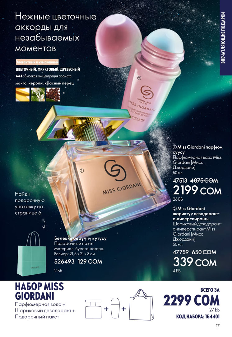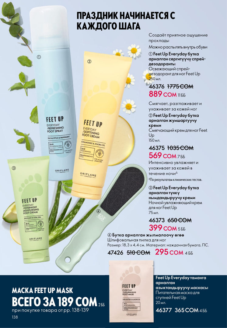На этой странице можно посмотреть следующий каталог Орифлейм Кыргызстан с ценами в сомах без регистрации. Заказ можно сделать самостоятельно на официальном сайте в личном кабинете. Если зарегистрироваться как консультант, то будет действовать скидка 20% на всю продукцию Орифлэйм от цен в каталоге.