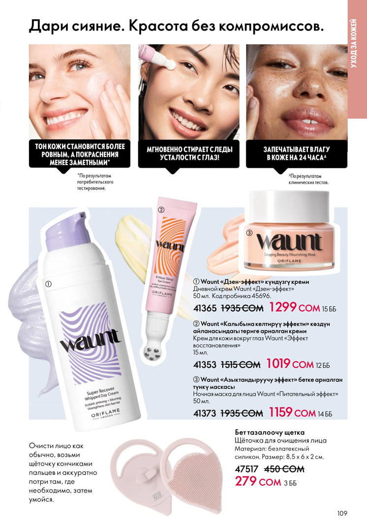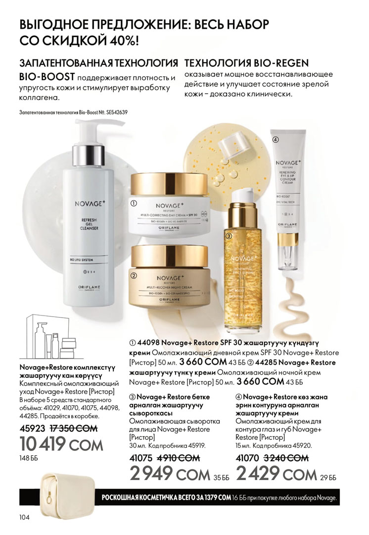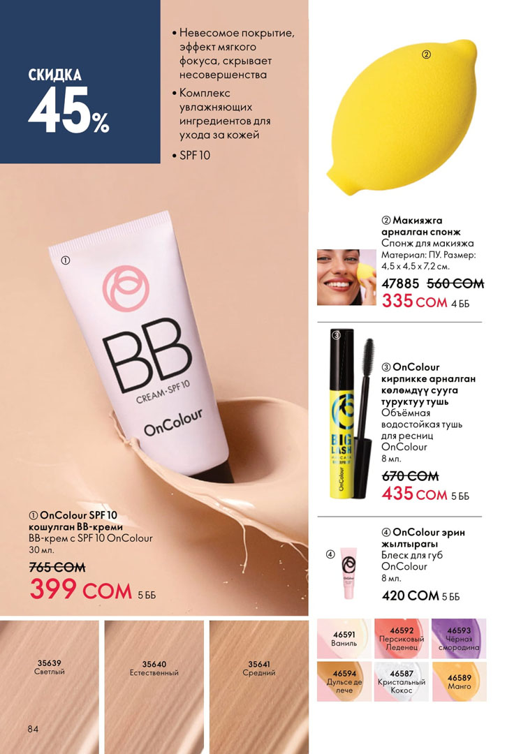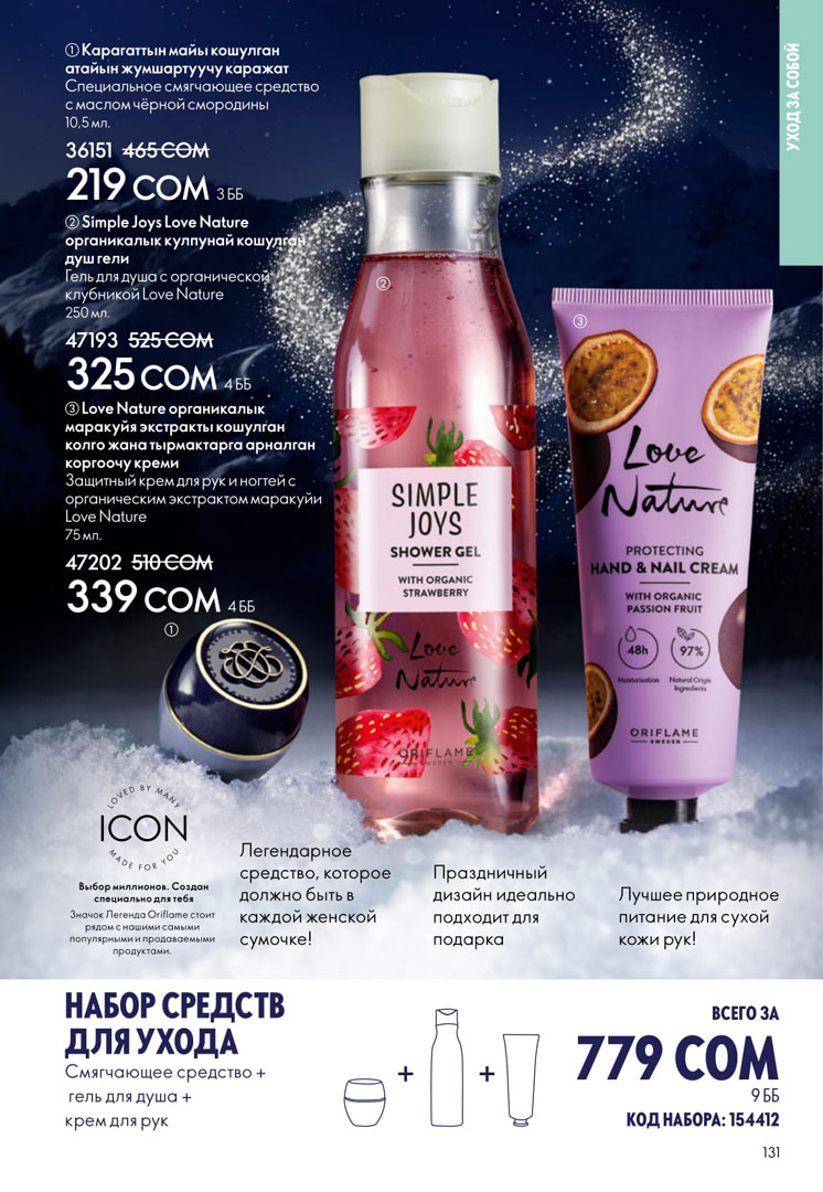 На этой странице можно посмотреть следующий каталог Орифлейм Кыргызстан с ценами в сомах без регистрации. Заказ можно сделать самостоятельно на официальном сайте в личном кабинете. Если зарегистрироваться как консультант, то будет действовать скидка 20% на всю продукцию Орифлэйм от цен в каталоге.