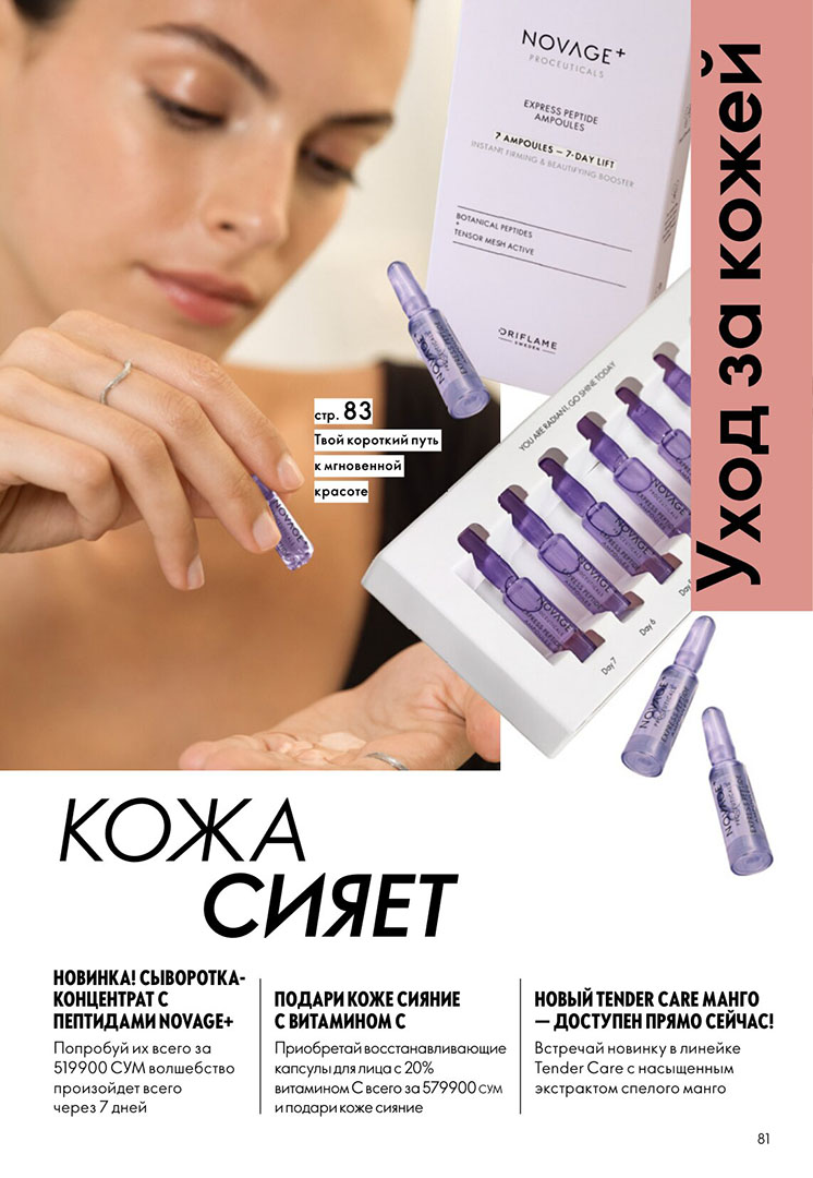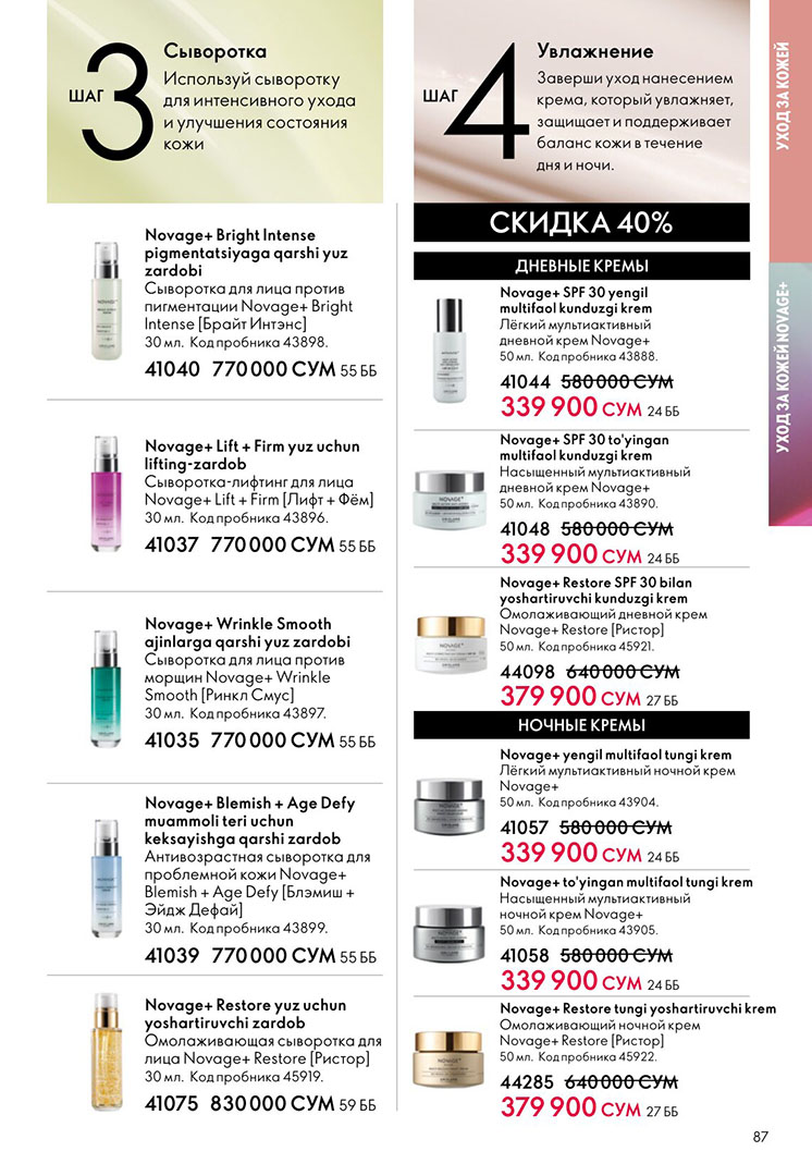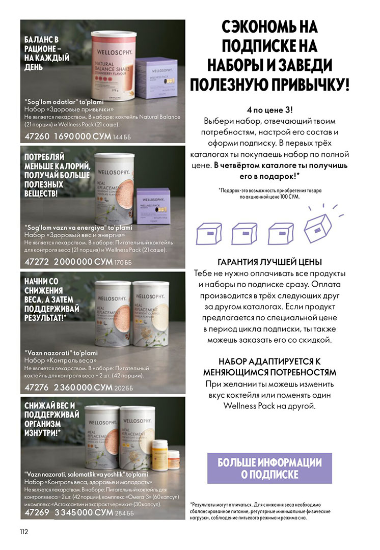 Можно полистать действующий каталог Орифлейм Узбекистан и сравнить цены на продукцию с ценами в этом каталоге, и покупать, когда выгодней. Специальные каталоги NovAge и Wellness, вкладки со специальными предложениями и распродажами смотрите на странице каталоги для Узбекистана.