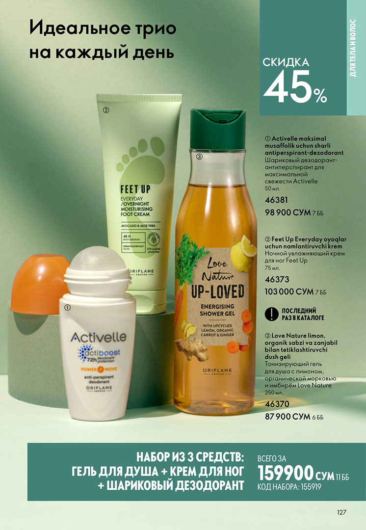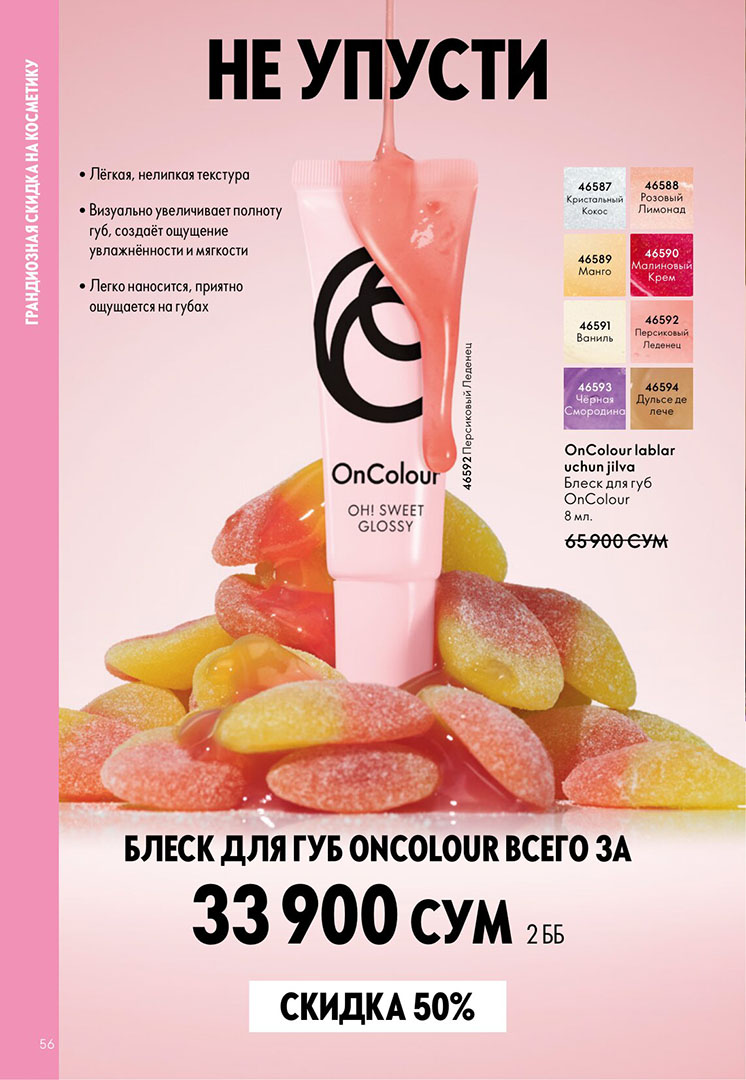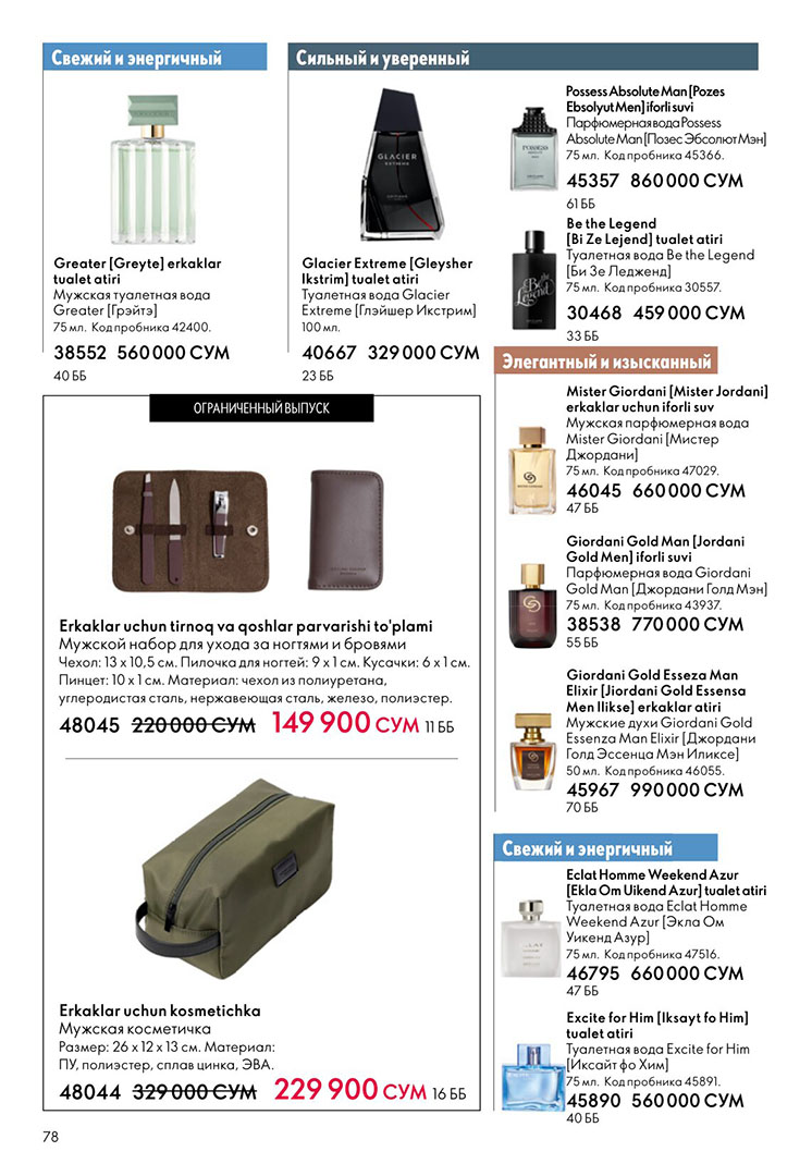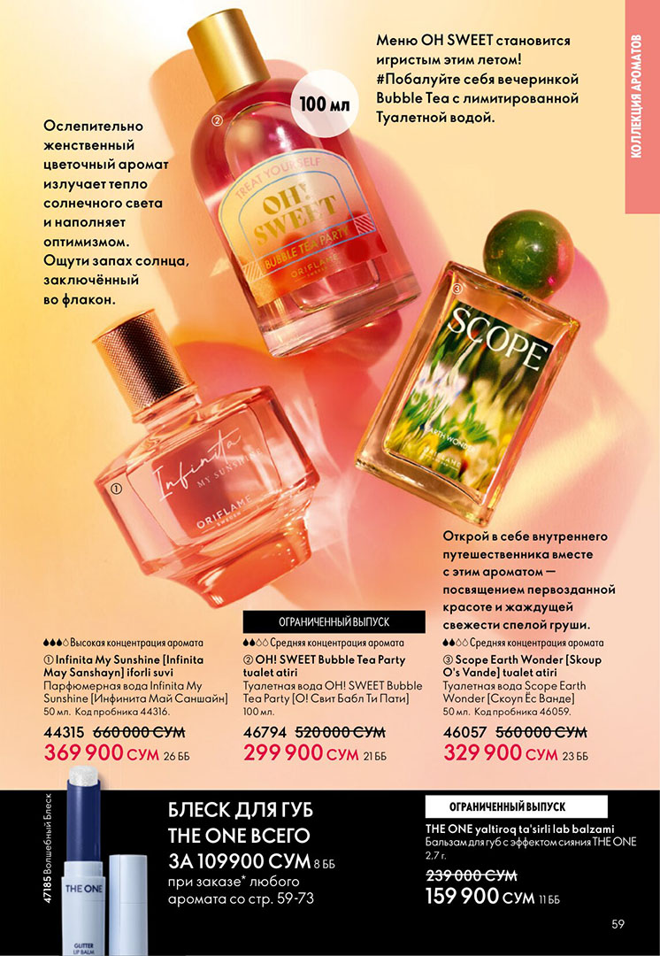 На этой странице можно посмотреть следующий каталог Орифлейм Узбекистан с ценами в сумах без регистрации. Заказ можно сделать самостоятельно на официальном сайте в личном кабинете. Если зарегистрироваться как консультант, то будет действовать скидка 20% на всю продукцию Орифлэйм от цен в каталоге.
