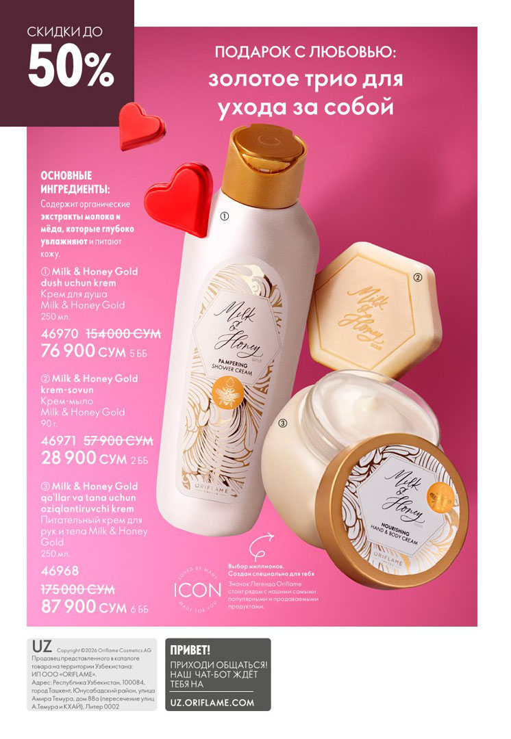 Каталог Орифлейм 2 2026 для Узбекистана на русском языке с ценами в сумах. Предложение действует с 25 января по 14 февраля 2026 года.