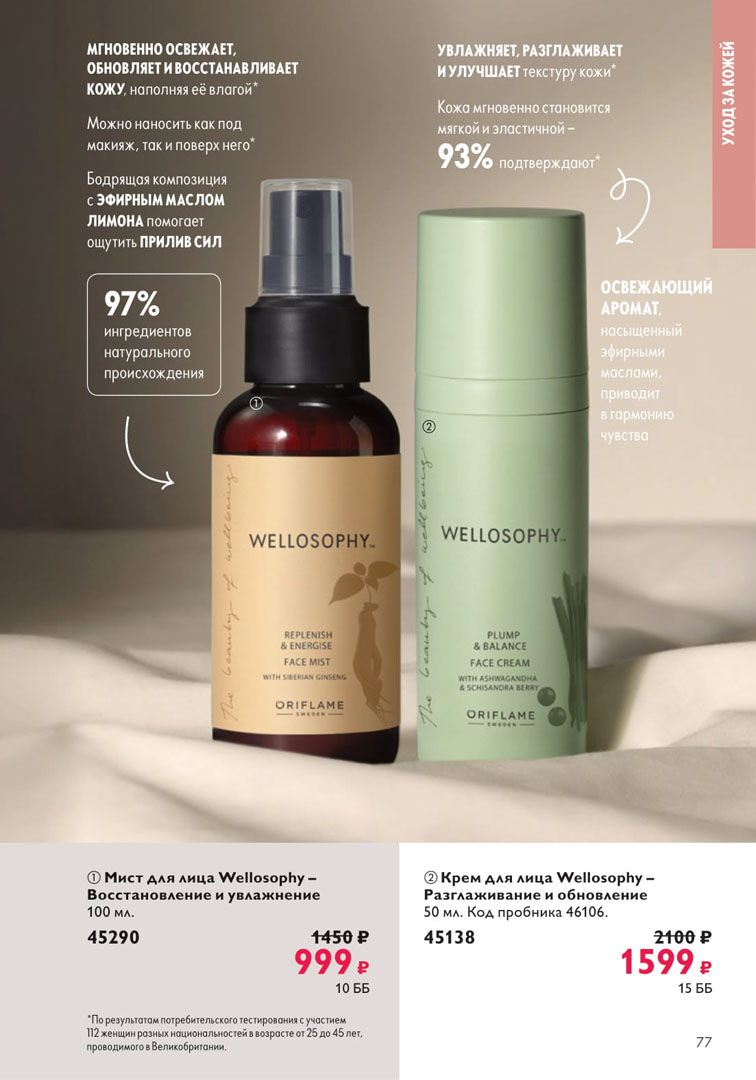 Предложения на продукты Wellosophy (Wellness) в текущем каталоге Oriflame.