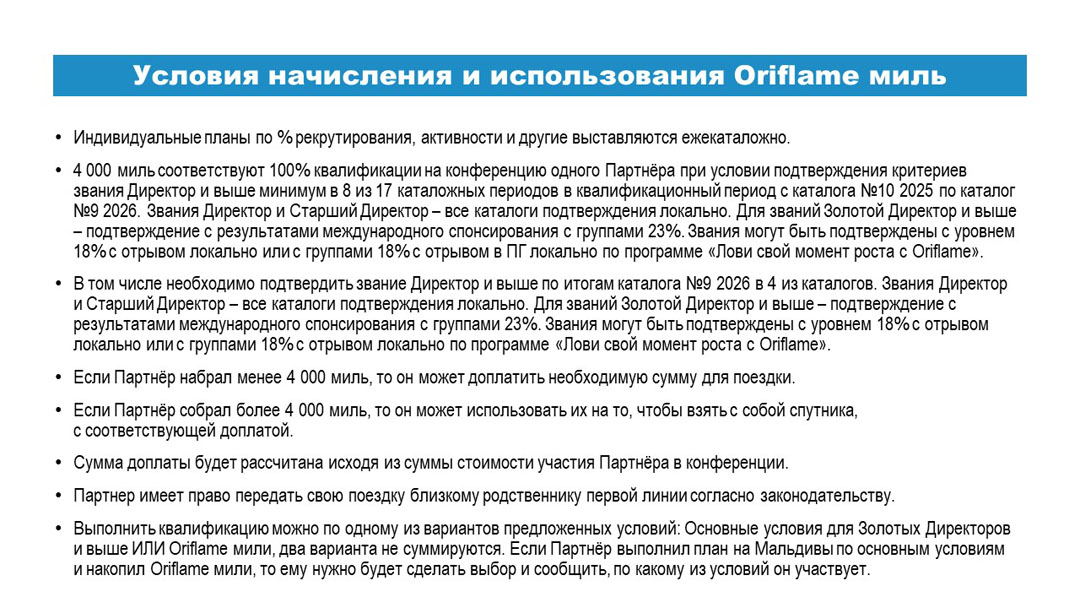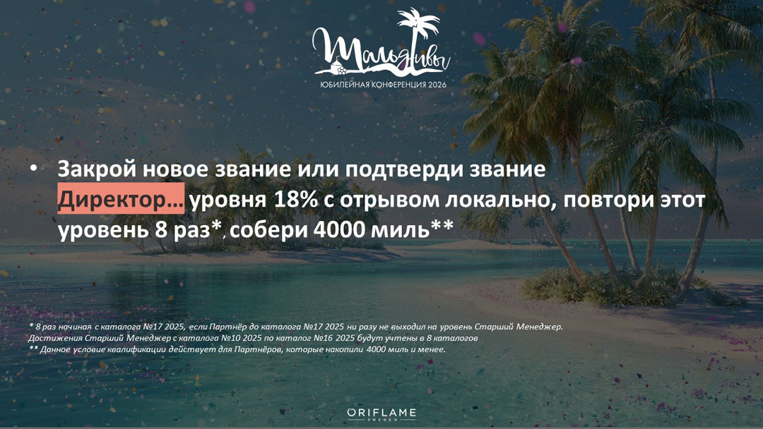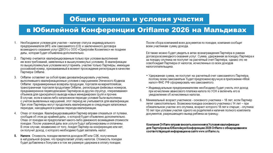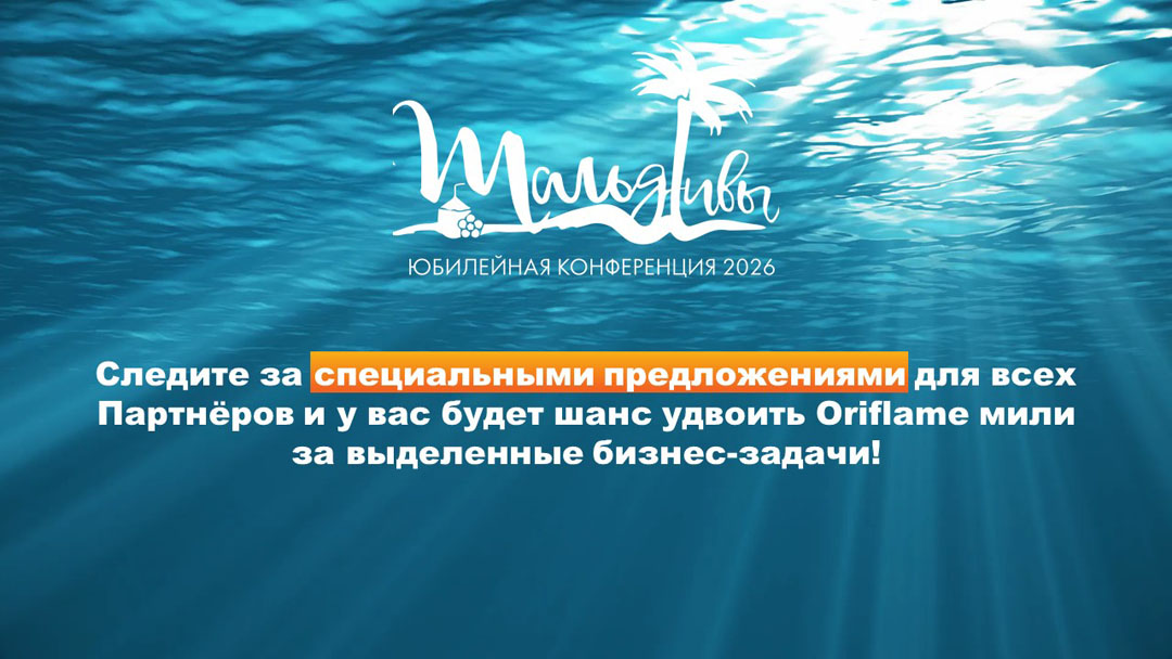 Условия и презентация Юбилейной Конференции Oriflame на Мальдивах в 2026 году.