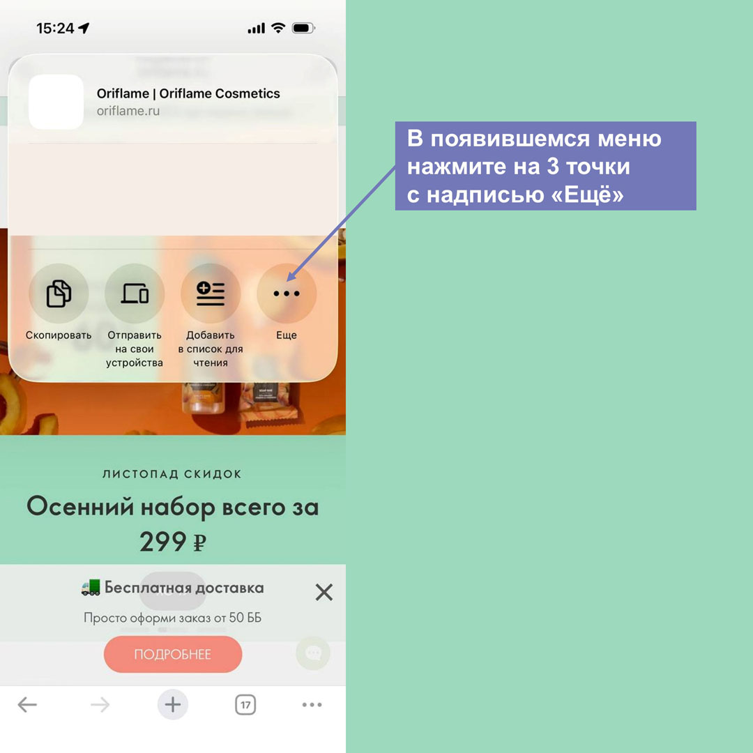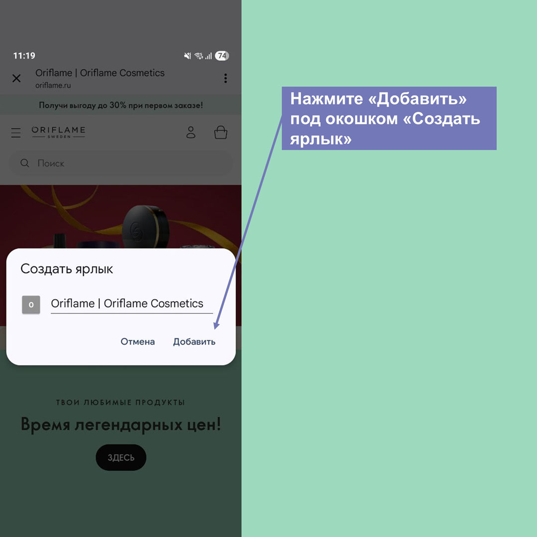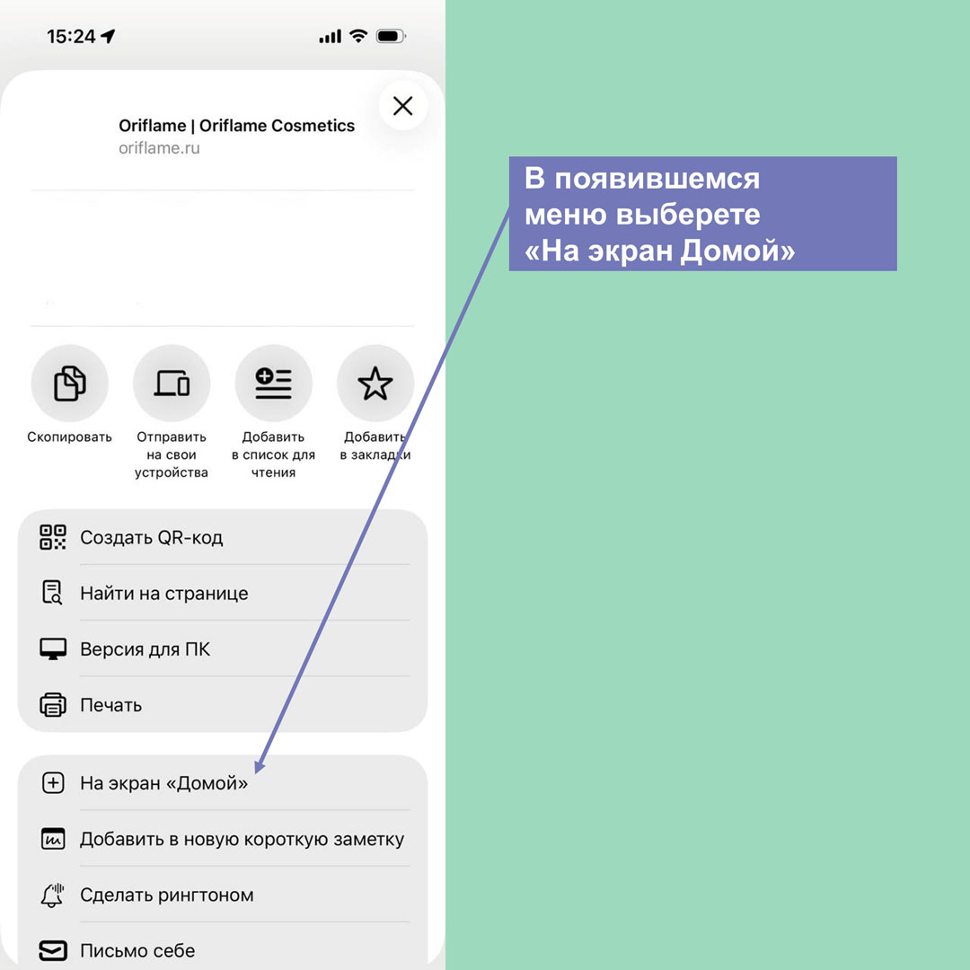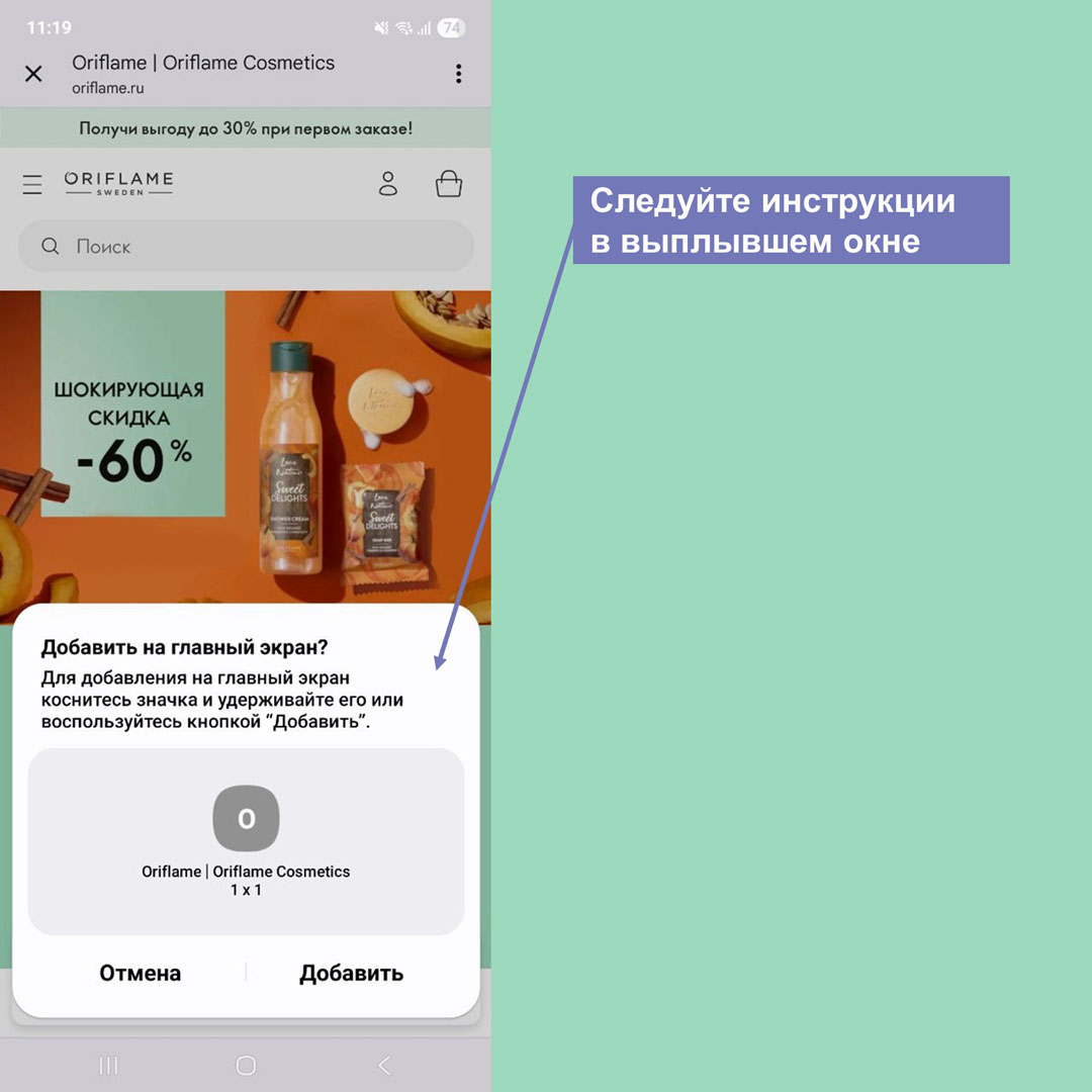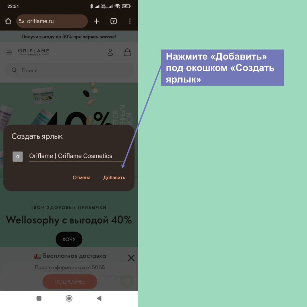 Чтобы сделать доступ к сайту oriflame.ru проще и быстрее, установите его ярлык на смартфон. Пошаговая инструкция в картинках по установке на Android и IOS доступна ниже. Листается стрелками ◀ ▶.
