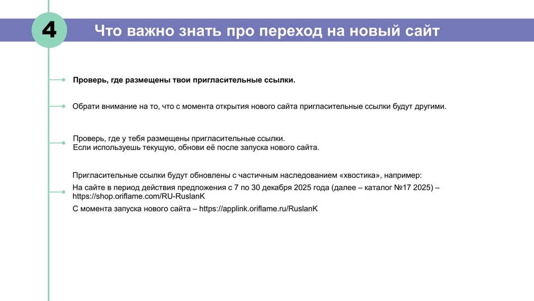 Важная информация о переходе на новый сайт oriflame.ru в картинках. Листается стрелками ◀ ▶.