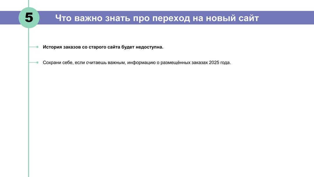 Старая история заказов на новом сайте будет недоступна, поэтому сохраните информацию о заказах за 2025 год, если она вам важна.