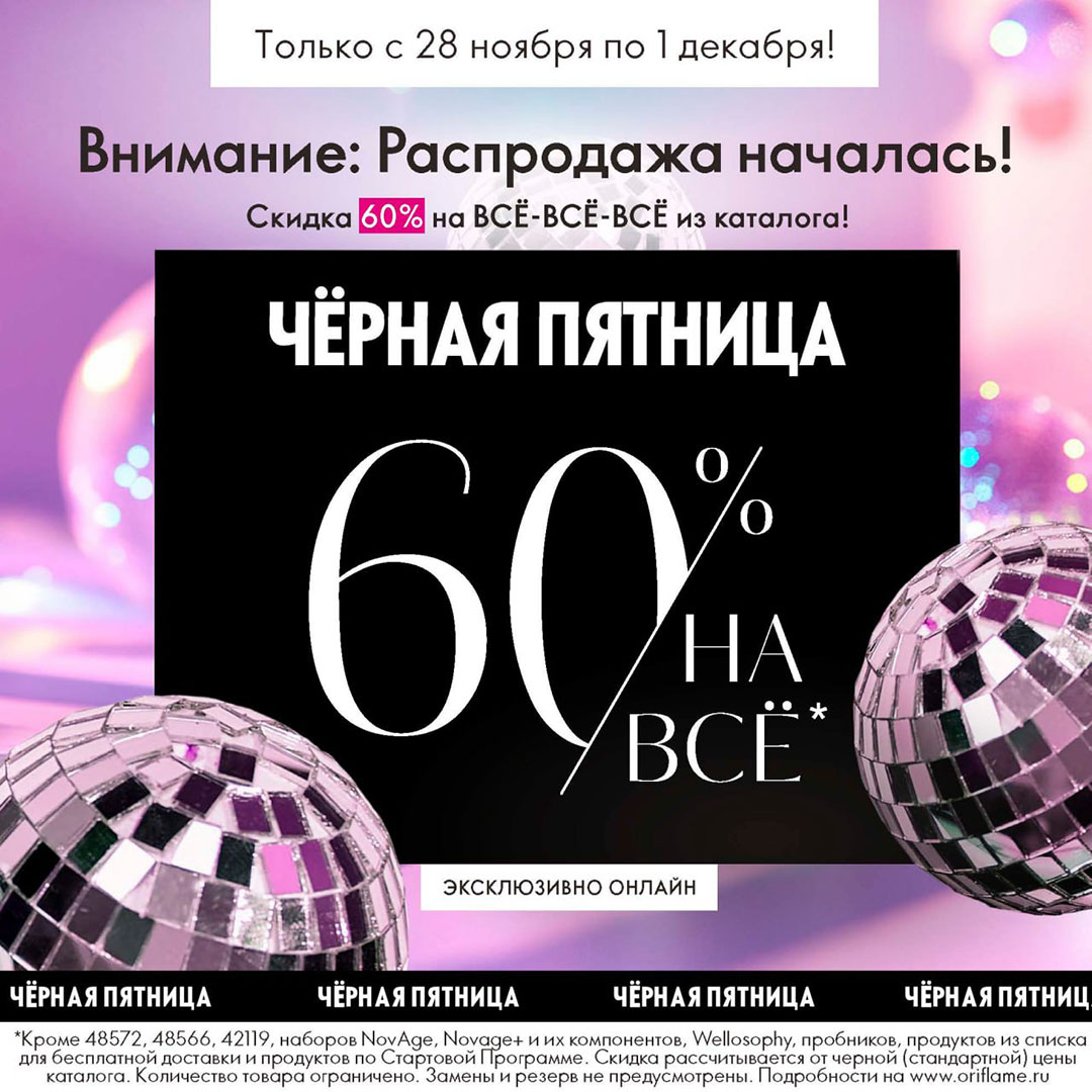 С 28 ноября по 1 декабря 2025 года действует скидка 60% на всё из каталога.