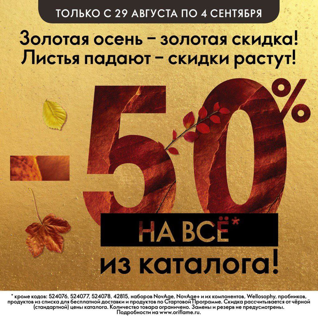 С 29 августа по 4 сентября действуют скидки 50% на всё* из каталога 12 2025.